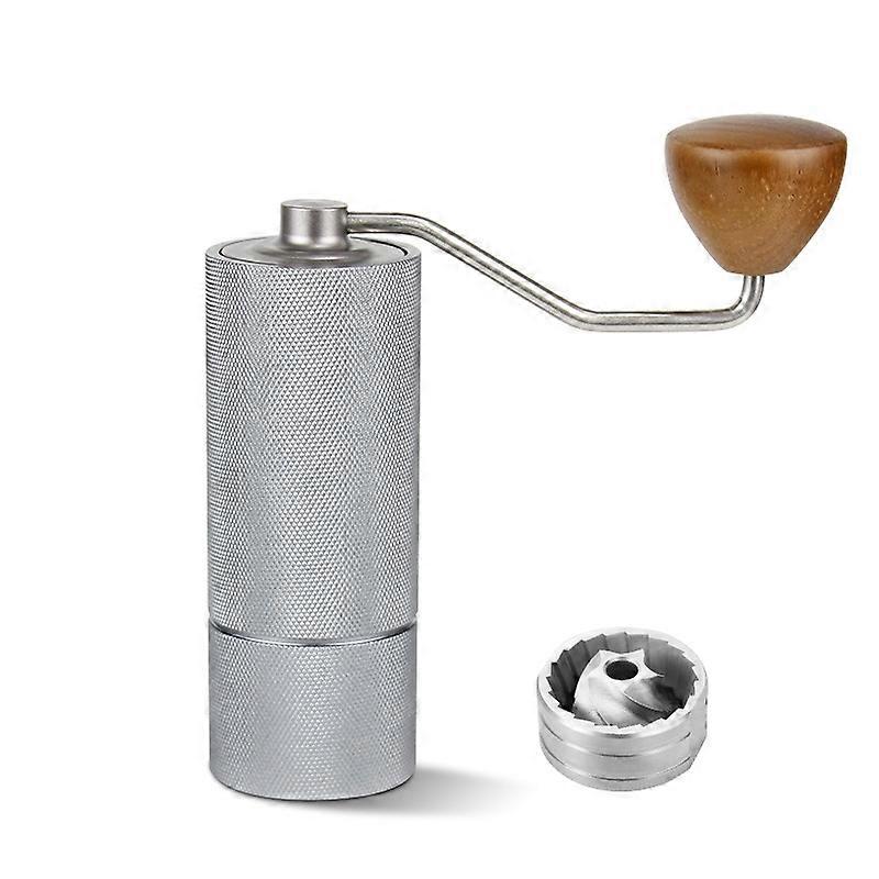 CNC Stainless Steel Hand Crank Coffee Bean Grinder, Specification: Pentagon Gray 1. Material: aluminum alloy, stainless steel grinding chamber, walnut wood 2. Capacity: 25g bean bin, 20g powder bin 3. Suitable for different coffee utensils, point-type digital thickness adjustment 4. The high-precision grinding core and grinding disc not only grinds fast, but also grinds very fine coffee powder, which is suitable for espresso machine extraction 5. 20 grams of flour in the bean warehouse, can grind 3 cups of flour at a time 6. The powder bin is designed to connect to the machine body, and the fixed powder bin does not fall off 7. The body is non-slip and easy to hold, easy to grind 8. One-piece double bearing design, smooth grinding without jamming 9. Three-stage diamond-shaped rocker, chestnut-shaped grip, fit the palm of the hand 10. Dimensions: 150x55mm 11. Weight: about 580 grams