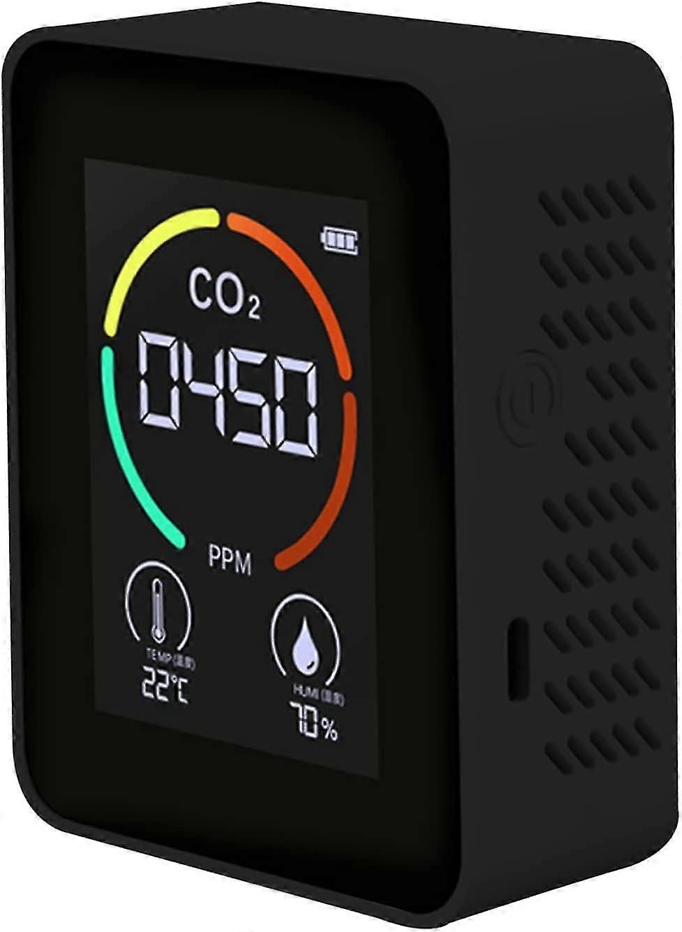 Co2 Detector, 3 In 1 Ambient Temperature And Humidity Tester, Co2 Monitor With Display For Home, Office, Warehouse (black)