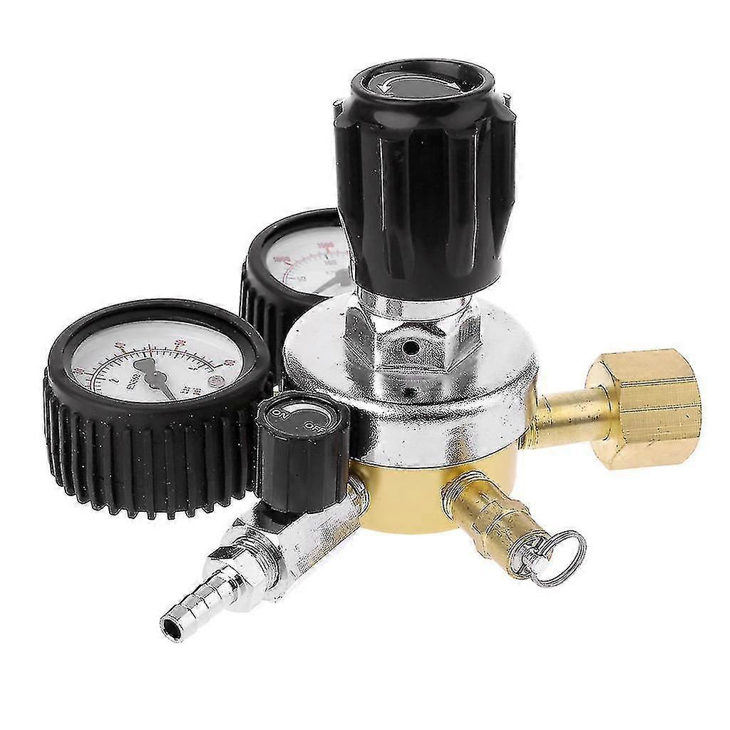 Feature: 1.Maintains Consistent PressureThe lock ring can be quickly locked without re-adjustment, And maintains steady Co2 pressure with no leaks. Sturdy durable dual gauge beer regulator features a multi-stage body that gives you more precise control when making small adjustments to the output pressure. 2.Easy to Adjust & ReadThe kegerator regulator is easily adjustable by hand, Making adjustment effortless even at freezing temperatures. Whether it's a bar, camping or family gathering, this beer keg regulator is your best choice. 3.Relief for Valve & Shut Off ValveFor added safety, The tap regulator has a manual pressure release for valve that releases pressure at 55-65 PSI. There is also a shut off for valve on the co2 pressure regulator that allows for instantly shutting off pressure to the keg without backing up your gas line and prevents backflow into the beer keg regulator. 4. Can also be used for a range of different gases, including: CO2, oxygen, argon, helium and nitrogen. 5. The regulator has a large body for high flow and is equipped with precision diaphragm for more precise adjustment. 6. Regulator also has a large adjustment knob, easy to adjust. Specifications: Color:Black + Silver Material: Stainless steel +Copper Note: Item color displayed in photos may be showing slightly different on your computer monitor since monitors are not calibrated same. Please allow 1-3mm slight deviation due to manual measurement. Thank you Package Include: 1 CO2 Regulator