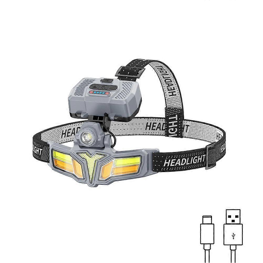 Description Battery: 1000ma*2 battery Modes: 11modes Lumens: 1200lumens 1. Versatile Illumination & Smart Control: Navigate any environment with unparalleled clarity thanks to multiple lighting modes, including focused Far Light, broad White Light, ambient Yellow Light, and a powerful Full Bright option for the main beam. Enhance safety with dedicated Red and Red-Blue Flashing modes for warning or signaling. Experience seamless operation with the innovative gesture sensing feature, allowing for convenient, hands-free light activation and mode switching with a simple wave. 2. :Extended Power with Rapid Recharge: Powered by robust lithium batteries, this headlamp is engineered for extended periods of use, ensuring reliable illumination throughout your adventures. The integrated USB fast charging design allows for quick and efficient power replenishment, minimizing downtime. A clear power display keeps you informed of your remaining battery life, so you're always prepared. 3. High-Quality Construction & Optimized Dimensions: Crafted from a blend of high-grade ABS+PC materials, this headlamp is built for resilience and sustained performance. Weighing approximately 385 grams (about 13.58 ounces), it offers a balanced feel without compromising comfort during wear. The main unit measures roughly 9 cm (3.54") in length, 6 cm (2.36") in width, and 4.5 cm (1.77") in height, providing a compact and ergonomic design. 4. :All-Weather Readiness & Enhanced Safety: Designed with a "Life Waterproof" rating, featuring a thickened waterproof ring and protective circuit design, this headlamp reliably performs in splashes and light rain, making it an ideal companion for various outdoor conditions (please note: it is not intended for underwater use). The distinctive red-blue flashing tail light serves as an prominent warning signal during nighttime activities, significantly boosting your visibility and safety. 5. Adaptable for Every Endeavor: This headlamp is meticulously designed to excel across a multitude of activities and tasks. From challenging hiking trails and late-night fishing trips to intricate repair work and evening runs, its combination of powerful multi-color illumination (White, Red, Blue, Yellow), smart gesture sensing, and a 0-90 degree adjustable lighting angle ensures optimal visibility and hands-free convenience in any situation. Package list * Headlamp * Charging Cable