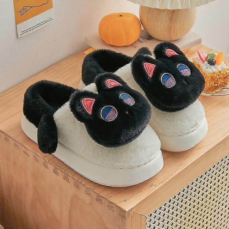 Comwarm Cute Cat Slippers Women Premium Cartoon Home Cozy Soft Cotton Slippers New Light Couple Indoor Floor Non-slip House Shoe