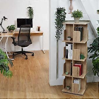 Bokhyllan i trälook erbjuder elegant förvaring med en 360-graders rotationsfunktion, vilket säkerställer enkel åtkomst till böcker och inredning. Dess kompakta design passar perfekt i hörn och maximerar utrymmet utan att ge avkall på elegans.