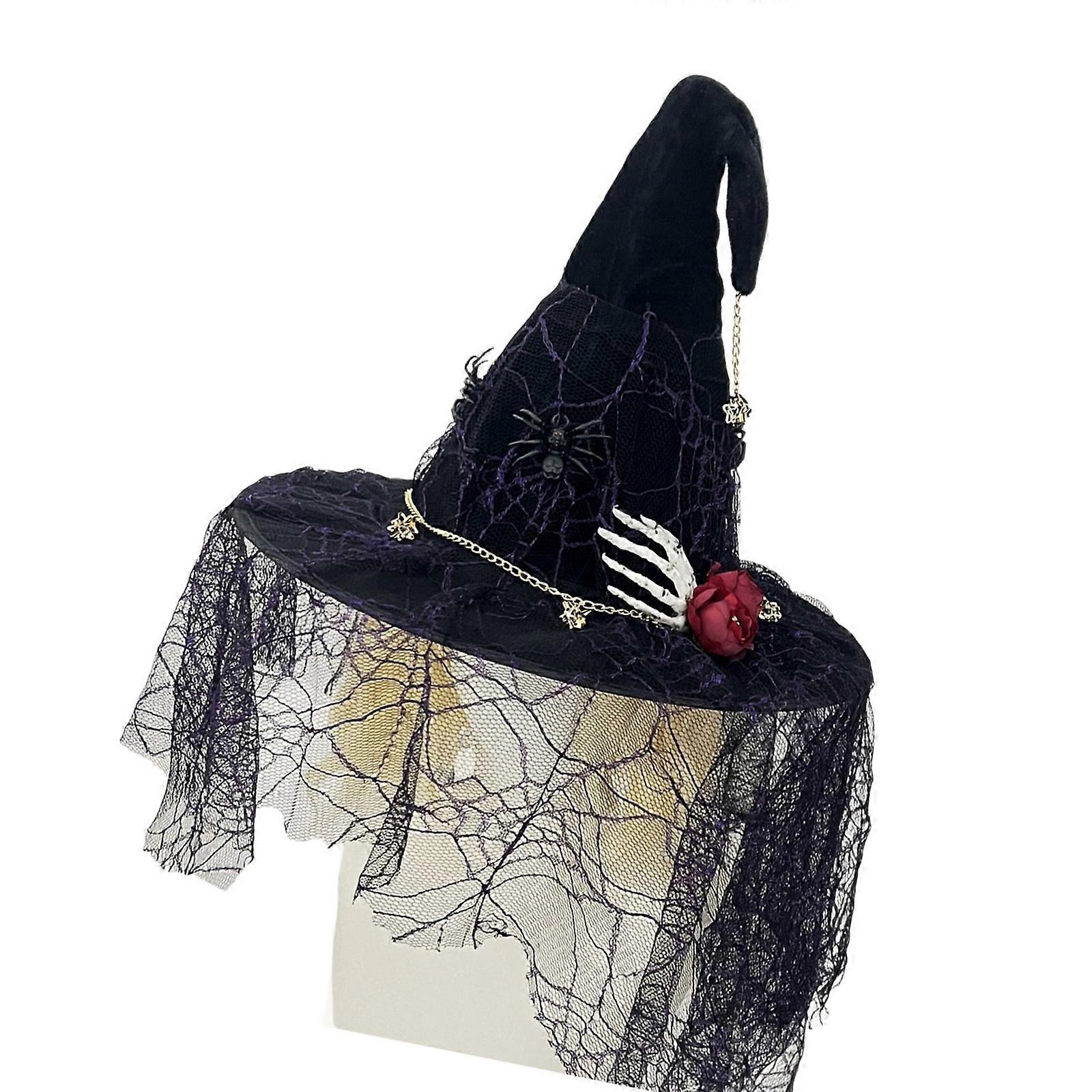 Cosplay Wizard Hat with Skeleton Hand SpiderWeb Design Comfortable Veil Witch Hat For Halloween Theme Party Gathering Multicolor