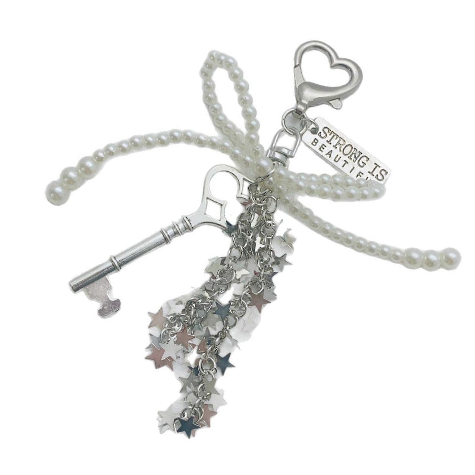 Cute Bowknot Pearls Keychains Craetive Beaded Bowknot Keychains Key Chain Charm for Adding Charm to Your Keys Multicolor