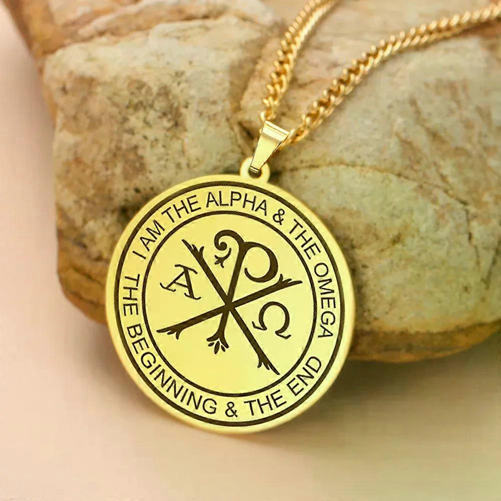 Dawapara Chi Rho Necklace Greek Orthodox Alpha Omega Pendant Protection Pray Religious Christian Gift Stainless Steel Jewelry