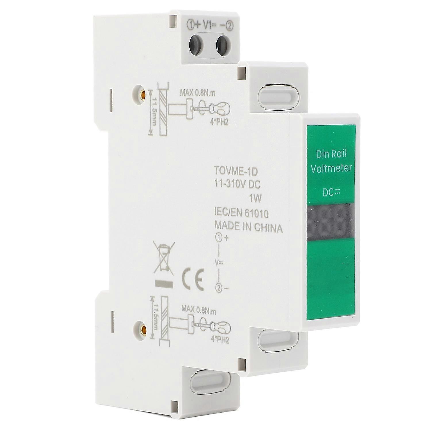 Feature: 1. Accurate Measurement: This DIN rail voltage meter adopts advanced circuit technology and fine components, which can accurately measure voltage values with a wide voltage range of DC 11V‑310V. 2. Switching Output: This rail voltmeter has a switching output function, which can convert voltage signals into digital signals through the switching output port, facilitating subsequent control and processing. 3. Intuitive Display: This DC voltage meter adopts a large LCD display screen, which can intuitively display voltage values and other related parameters, making it convenient for users to observe in real time. 4. Easy Installation: This digital voltmeter adopts DIN rail installation, which can be directly installed on the rail of electrical device, avoiding the traditional problems of complex installation and large space occupation. 5. Easy to Operate: This digital voltmeter has a simple and clear operating interface and user friendly design, allowing users to achieve related functions through simple button operations, convenient and efficient. Specification: Item Type: DC Voltage Meter Material: PC Display Circuit: 1 Power Consumption: 1W Current Type: DC Voltage Range: DC 11V-310V Accuracy: ≥100V: 1%,