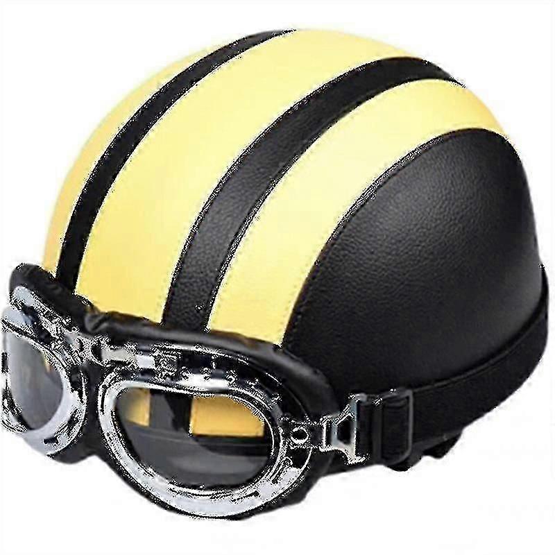 Dd-retro Motorcycle Leather Half Helmet With Goggles Yellow