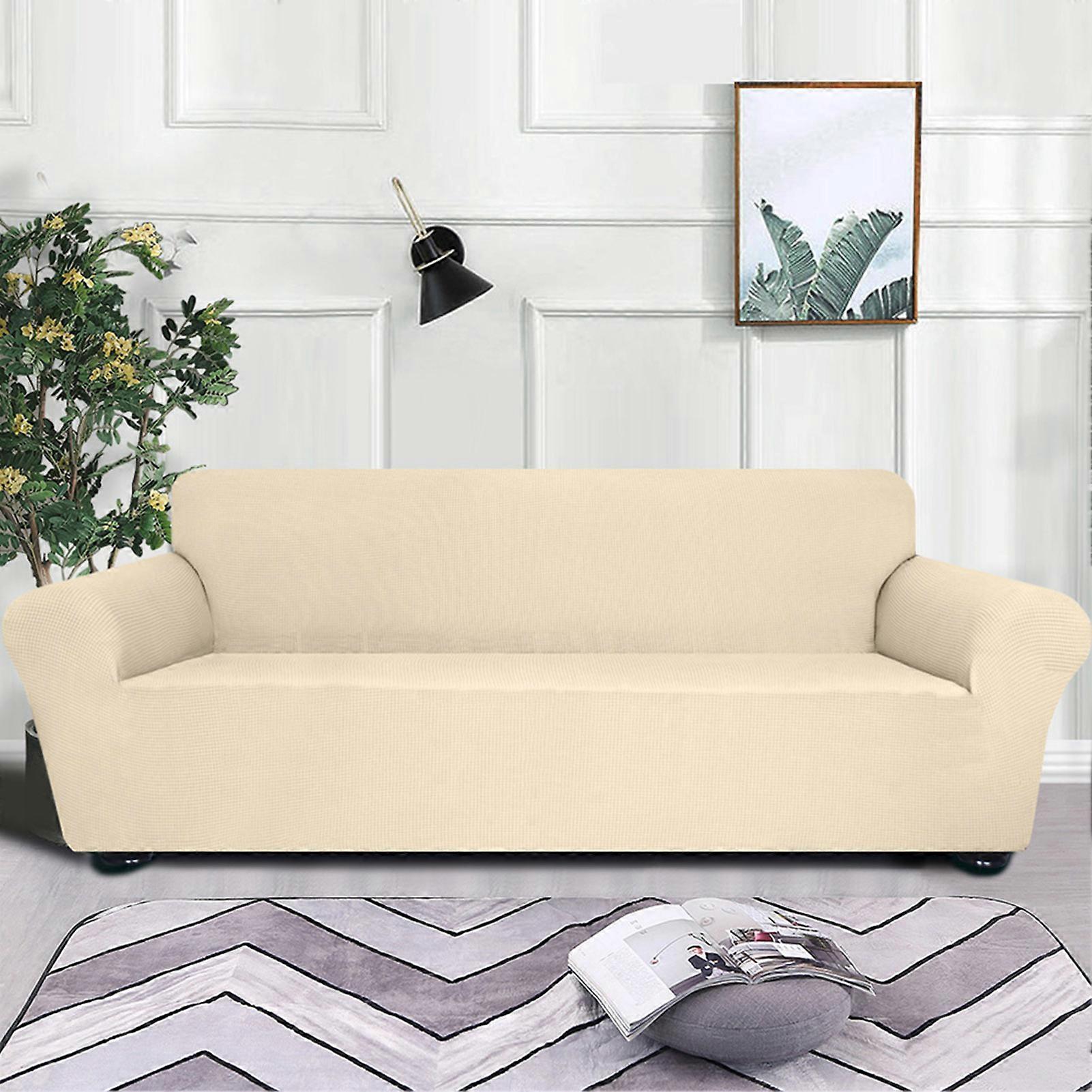 Decdeal Stretch Sofa Cover Anti-Slip Soft Couch Sofa Cover Washable for Living Room Kids Pets 4 Seat Beige