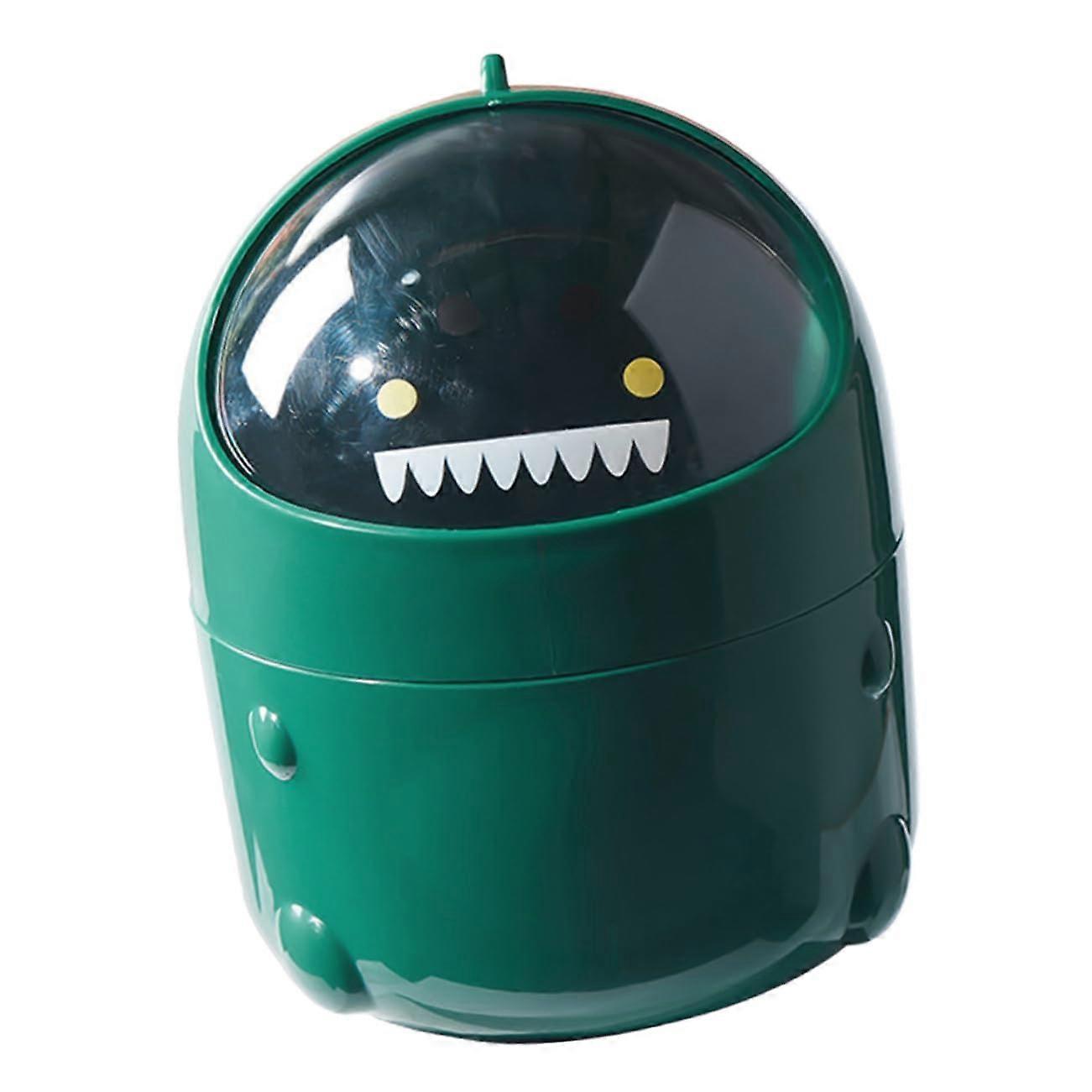 Desktop Trash Can Flip Lid, SpaceSaving Garbage Bin For Office And Home, Sealed Design, Green Dinosaur Style