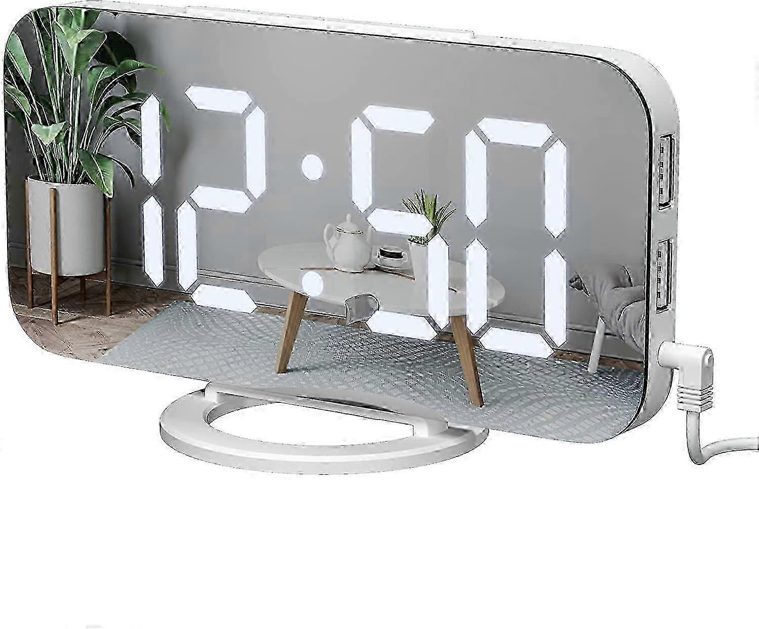Digital Alarm Clock Desktop Mirror Surface Clock With Dual Usb Led Display For Office Home_ww