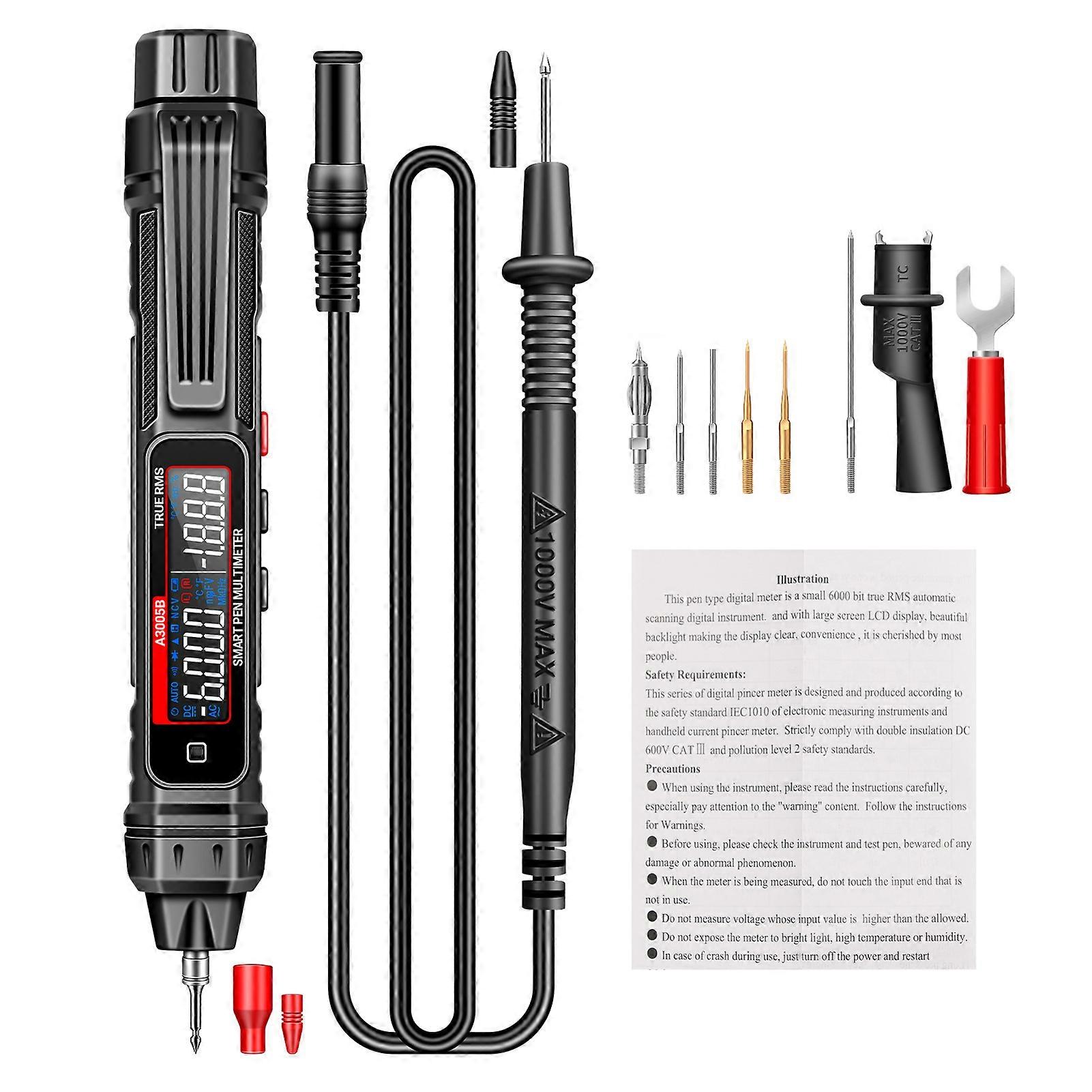 Experience precision and convenience with this pen-type digital multimeter, designed as a compact 3 3/4 bit true RMS automatic scanning instrument. Featuring automatic identification measurement, this digital meter intelligently distinguishes between voltage and resistance without the need for manual dial adjustments, ensuring effortless and accurate readings every time.