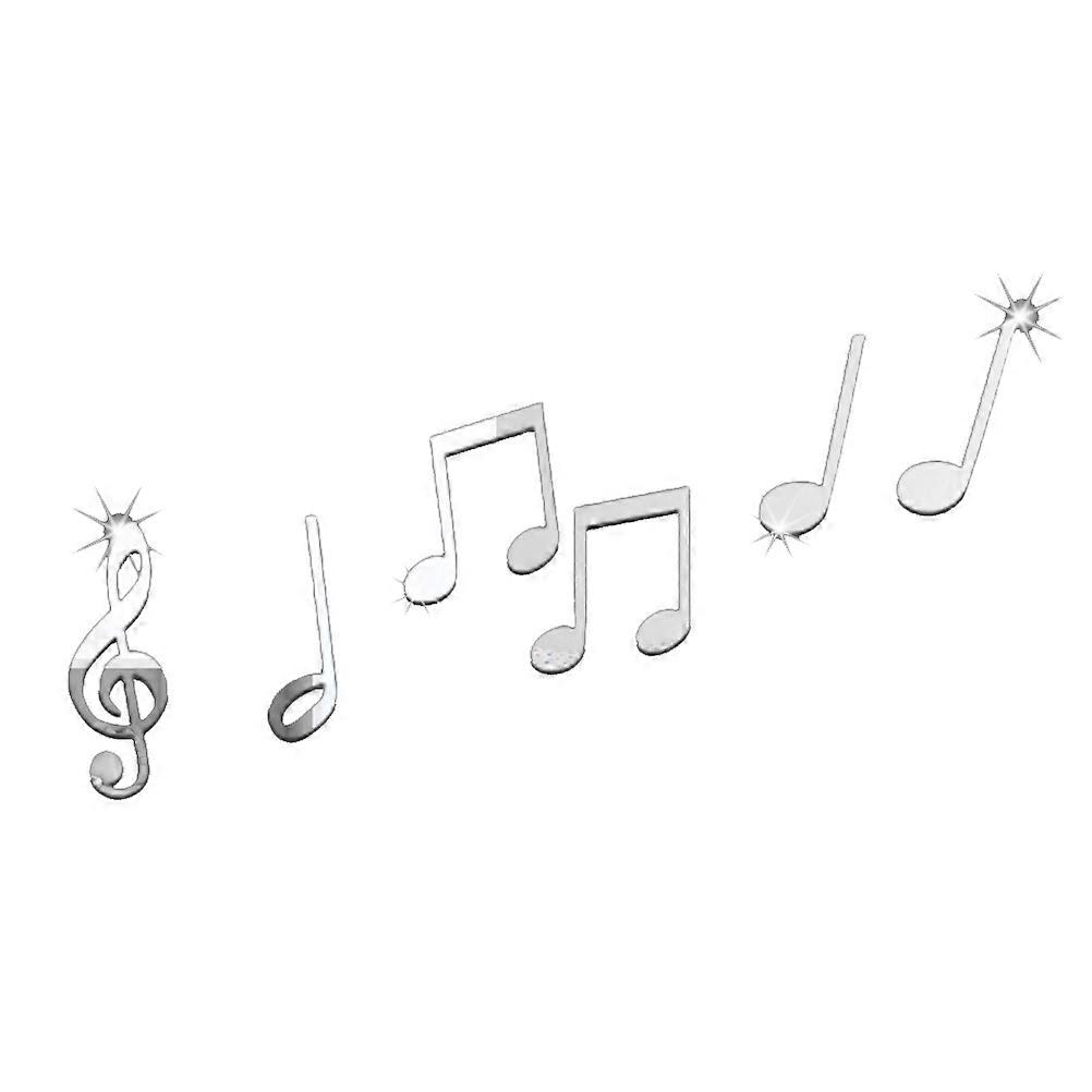 DIY Acrylic Art Sticker Music Note Pattern Mirror Surface Wall Sticker Bedroom Office Decor Mural Decoration (Silver)