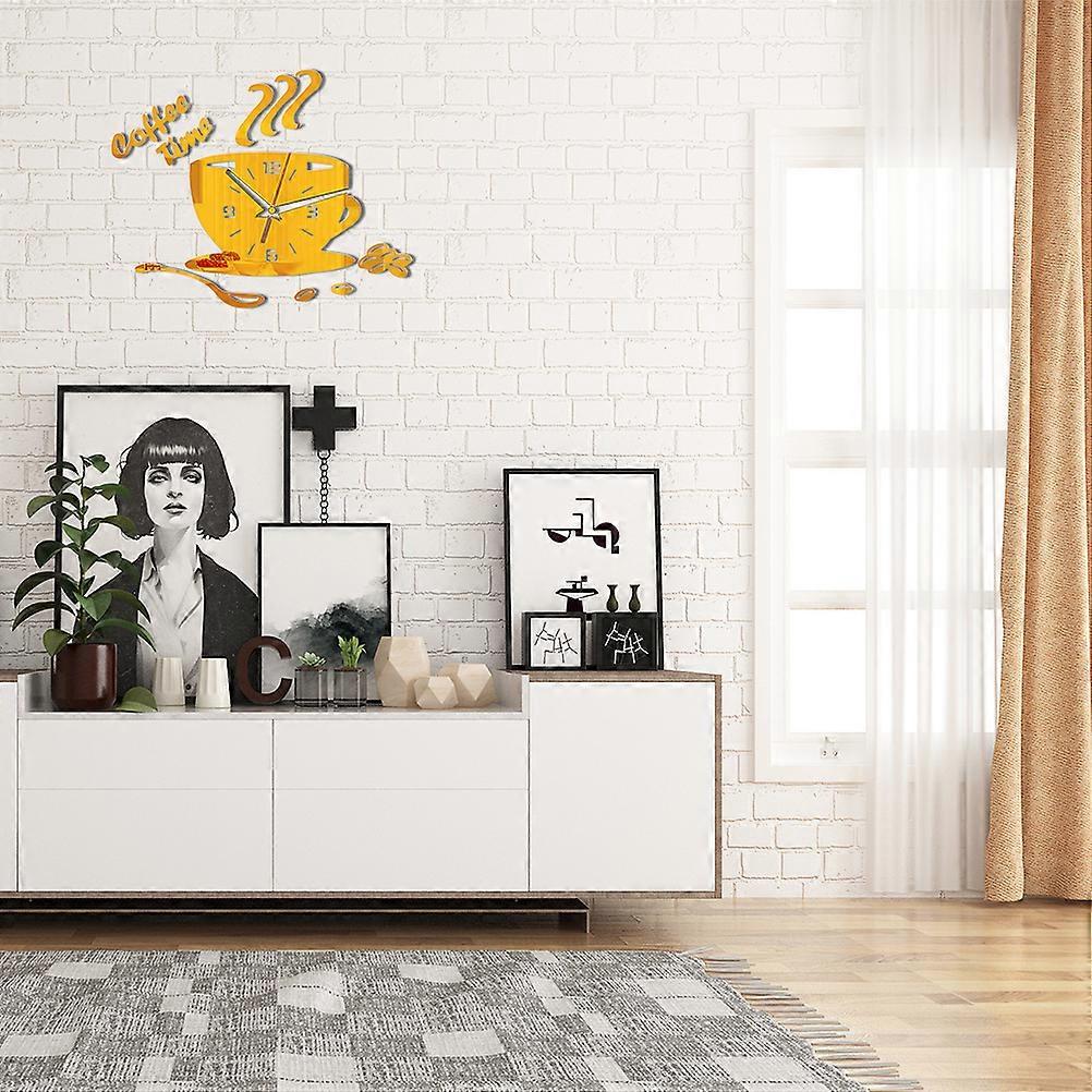 DIY Acrylic Wall Clock Modern Mute Coffee Time Clock Cup Shape Wall Sticker Hollow Numeral Clock