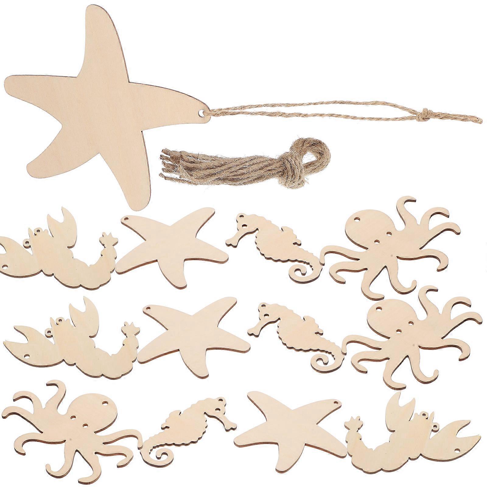 DIY Wood Slices Cutouts Ornament For Festival Decoration Ocean Animals Theme 4 Sets