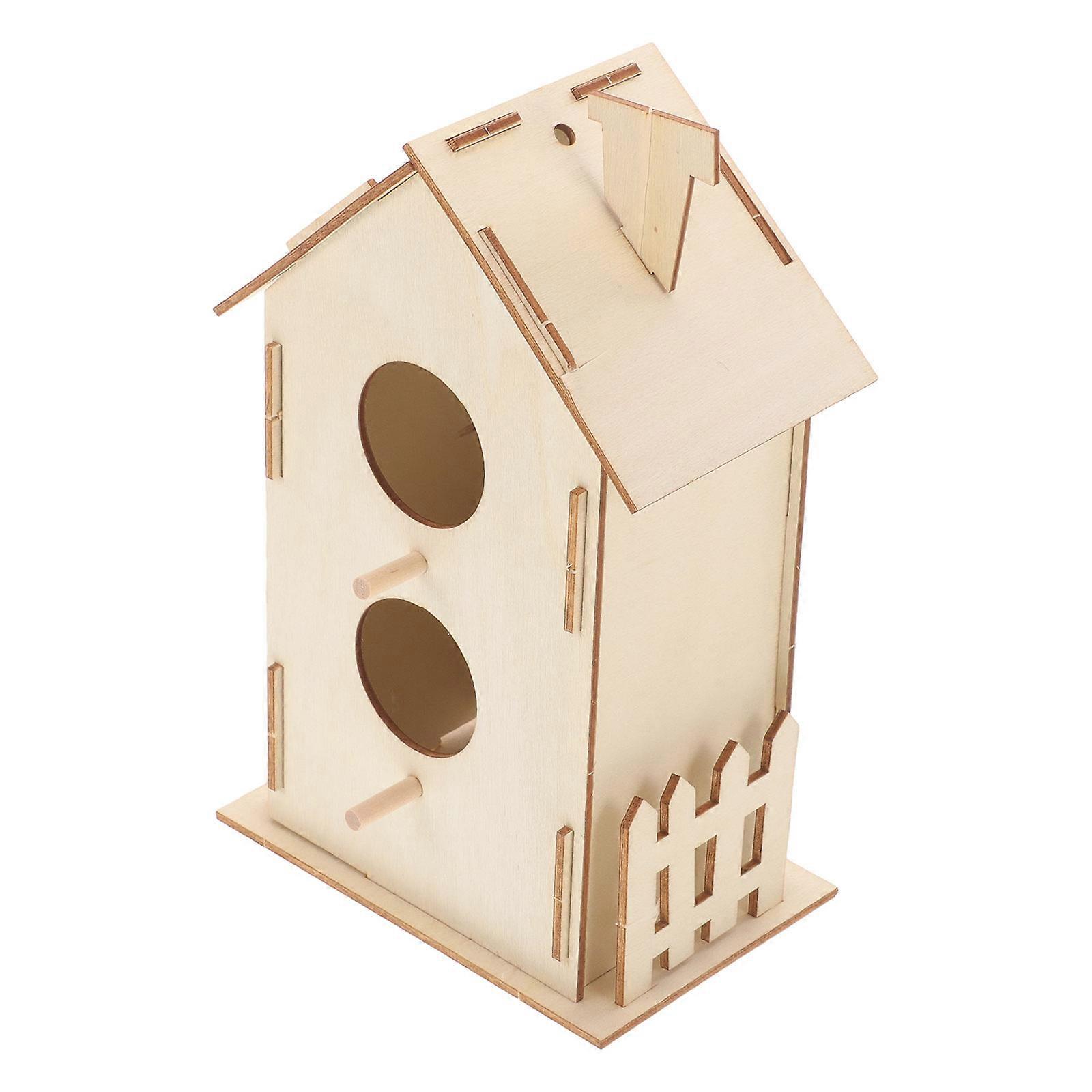 Diy Kids Unpainted Bird House Craft For Home Decoration Double- Design 1Pcs