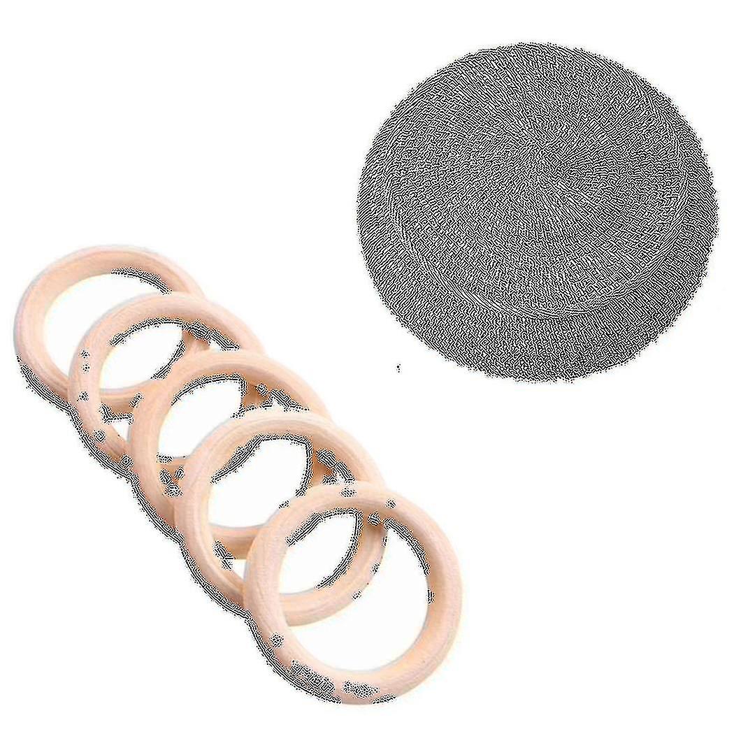 5x Wooden Ring For Crafting Diy Craft Jewelry 30mm & 1x Rattan Boxes With Lid Hand-woven Multi-purp