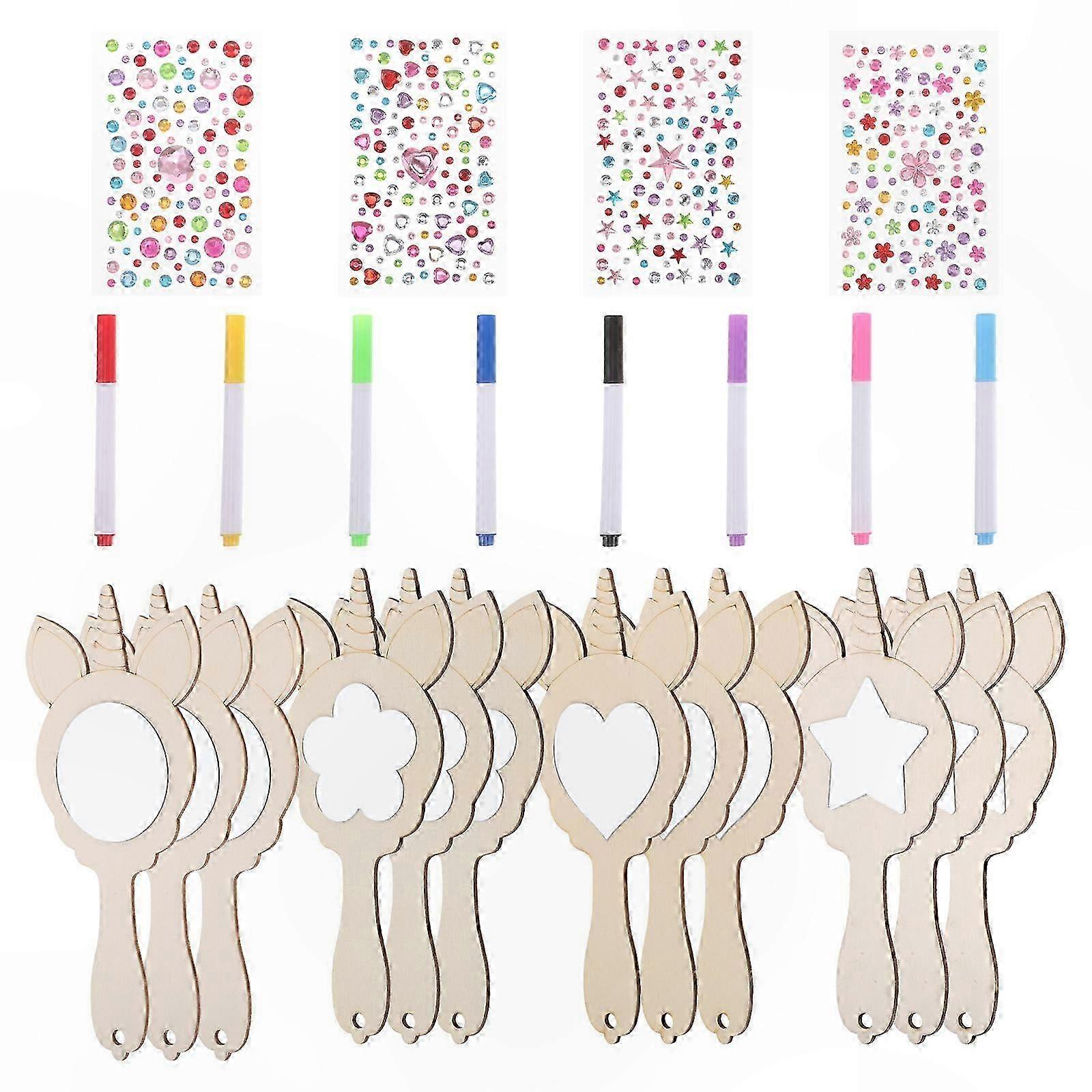 Unfinished Wooden Unicorn Hand Mirror for DIY Crafting Projects Assorted Colors Decorative Accessory Set