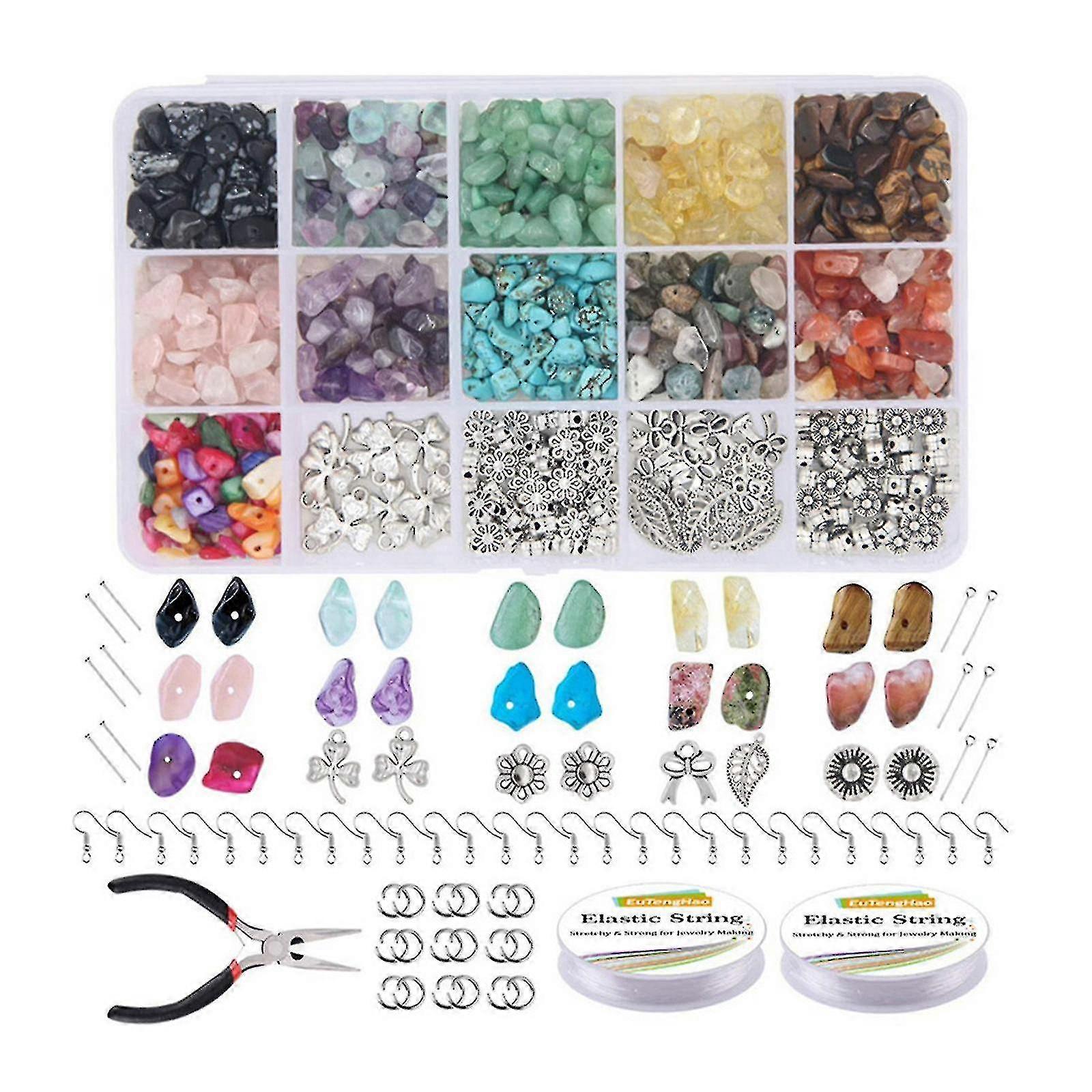 Description:The jewelry-making kit is great for the DIY bracelet-making kits, making rings, necklaces, anklets, earrings, pendants, and making other crafts, suitable for making special jewelry for yourself or making gifts for your family your friends.Features:[Great Gift]Suitable for anniversaries, holidays, parties, as gifts for friends, family, classmates, and teachers.[Useful]The beads jewelry-making kit is great for beginners for jewelry-making stones.[Gemstone Beads]The beads for jewelry making with holes, the edge of the chip are well polishing, it is a perfect gem earring making kit.[Multiple Choice]Large quantity stones for jewelry making provide more matching options for your jewelry.[DIY]Great set for making your own personality style earring, make you look different.Specifications:Color: MulticolorMaterial: Elastic Rope, Scissors, GravelStyle: FashionApplication: JewelryOccasion: Home, Handcraft Shop, etcPackage Size: 17*11*4cm / 6.69*4.33*1.57inchPackage Weight: 380g / 0.83lbPacking List:1 * 11 Types of Crushed Stone (Each Styles 45-55pcs)1 * 30PCS 3 Styles Pendant1 * 100PCS 2 Styles Spacer Beads1 * 100PCS Ear Hooks1 * 80PCS Open Ring1 * 50PCS Pin1 * 50PCS Nine Needles1 * Toothless Pliers1 * 2PCS Transparent Elastic WireNotes:1. Due to the difference between different monitors, the picture may not reflect the actual color of the item. We guarantee the style is the same as shown in the pictures.2. Please allow slight dimension difference due to different manual measurements. If you have any questions, concerns, or need further information, please feel free to contact us anytime. Our team is dedicated to providing you with support and answering any inquiries you may have. Your satisfaction is our ultimate goal. We look forward to offering you top-quality products and service! Thank you for your support.