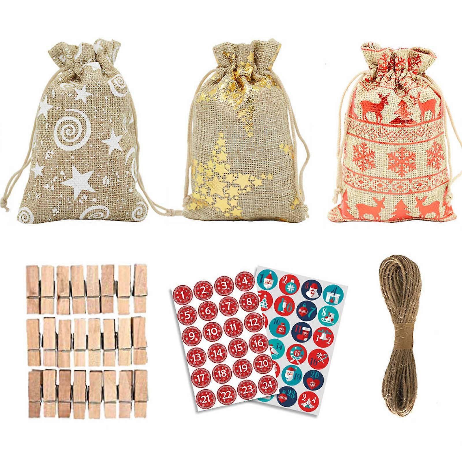 DIY Christmas Advent Calendar Gift Bag Set 1-24 Advent Number Labels Kit