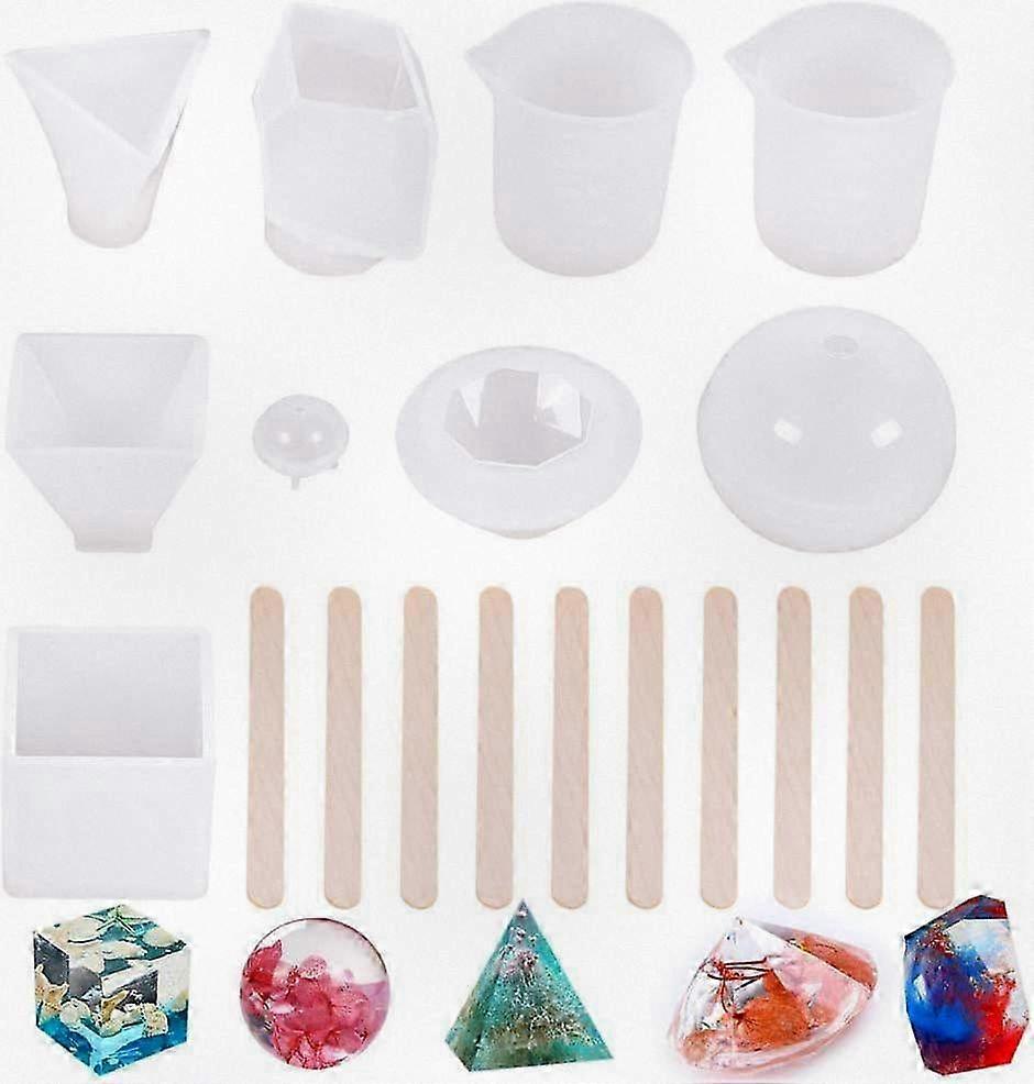 Clear Silicone Mold for Crafting DIY Jewelry, Resin Casting Tools for Pendant Beads in Round, Sphere, Cube, Pyramid, and Diamond Shapes