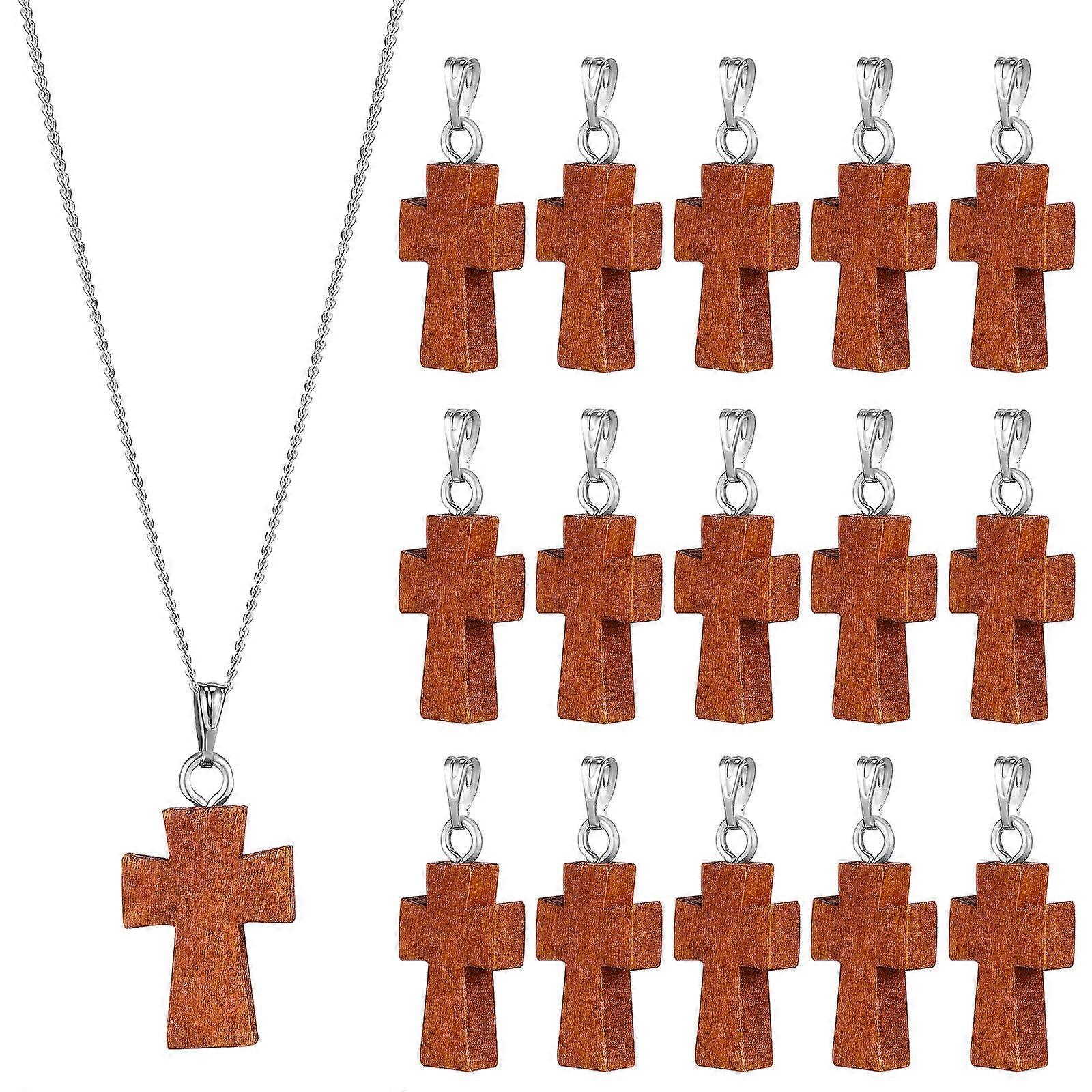 Wooden Cross Charms 15pcs Set for DIY Jewelry Making, Small Pendants for Bracelets, Necklaces, Keychains and Craft Accessories, Brown Color Bulk Pack