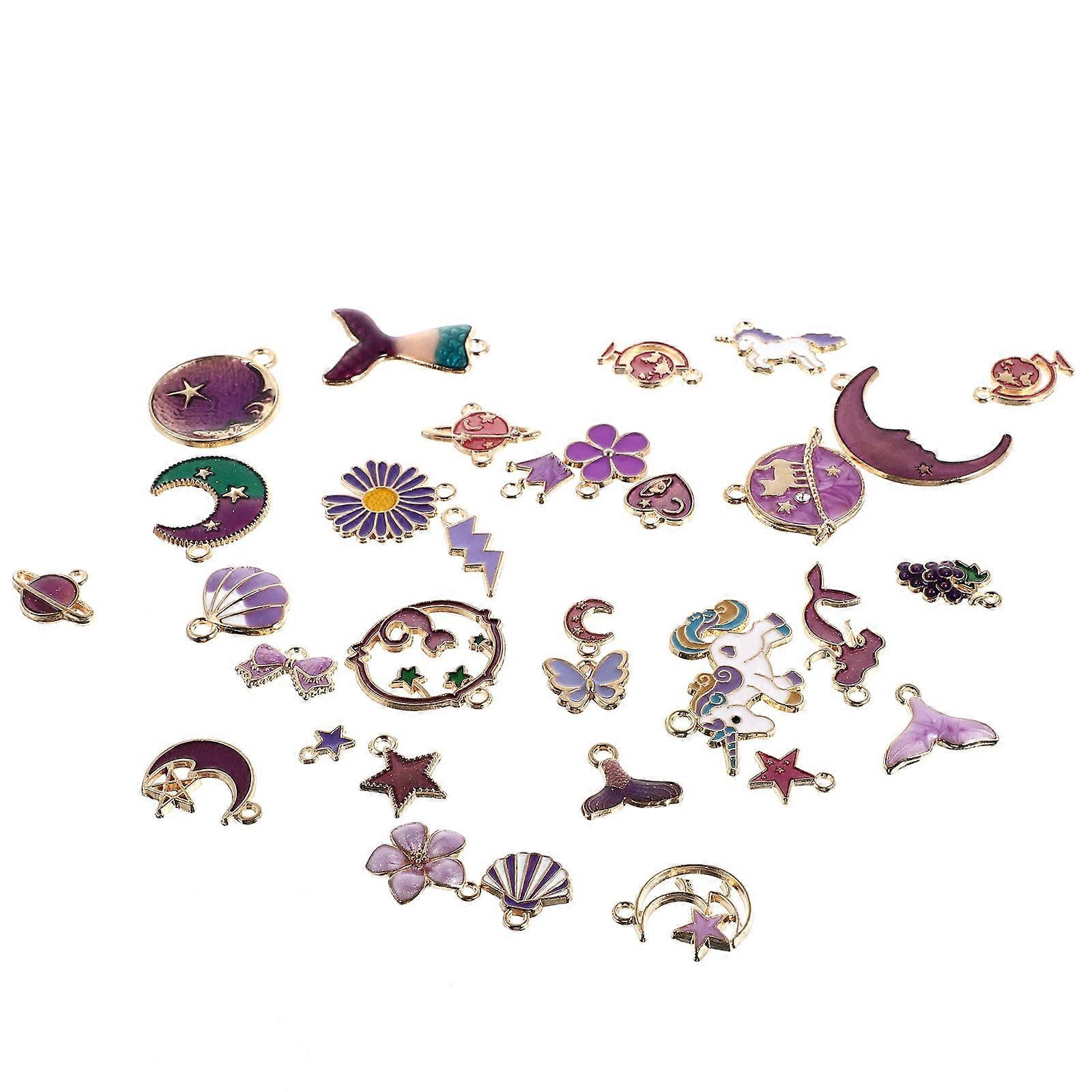DIY Jewelry Supplies 31Pcs Purple Alloy Pendants For Jewelry Making And Accessory Decoration