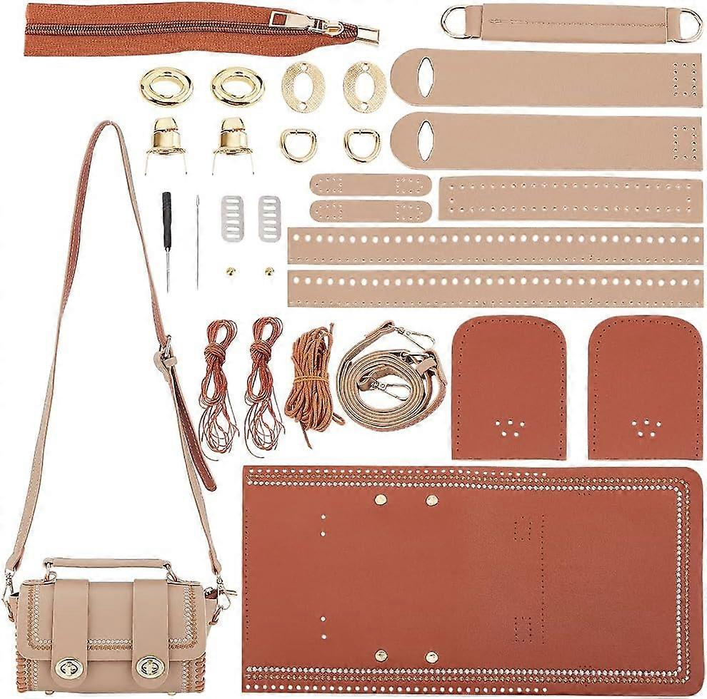 DIY Shoulder Bag Making Kit PU Leather Knitting Crochet Bag Making Materials Crossbody Bag Stitching Complete ToolSet 7.5x2.8x3.9 Inch Khaki