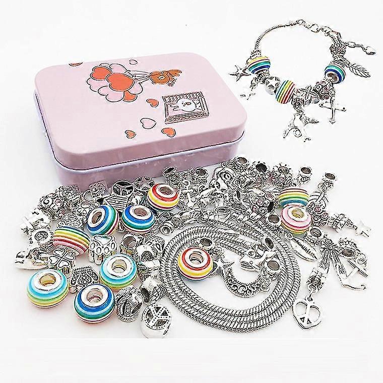 EVERYTHING INCLUDED - Diy bracelet set includes: 3 snake bone chains, 15 pendants, 10 pink glass beads, 5 pink diamond beads, 20 large hole beads, 6 positioning beads, 1 small pink square box
