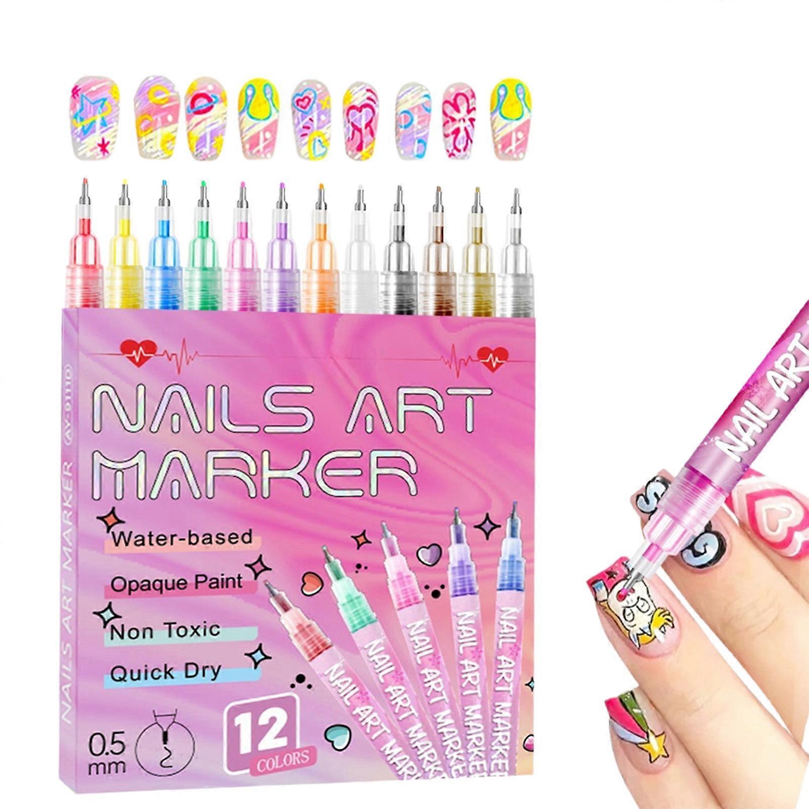 DIY Nail Art Markers - 12 Colors for Creative Designs | Quick-Dry Pens for Home & Professional Use Multicolor