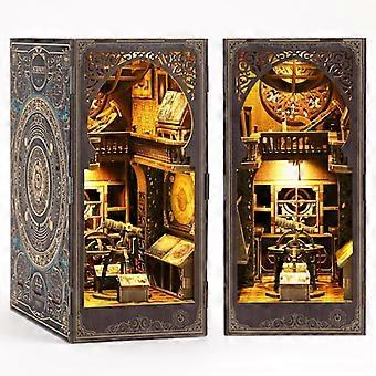 DIYブックコーナーキット、家具とLEDライトを備えたミニチュア木造住宅、天文博物館