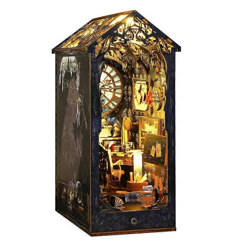 DIY Book Nook Kit 3D Wooden Puzzle Bookshelf Insert Decor LED Light DIY
