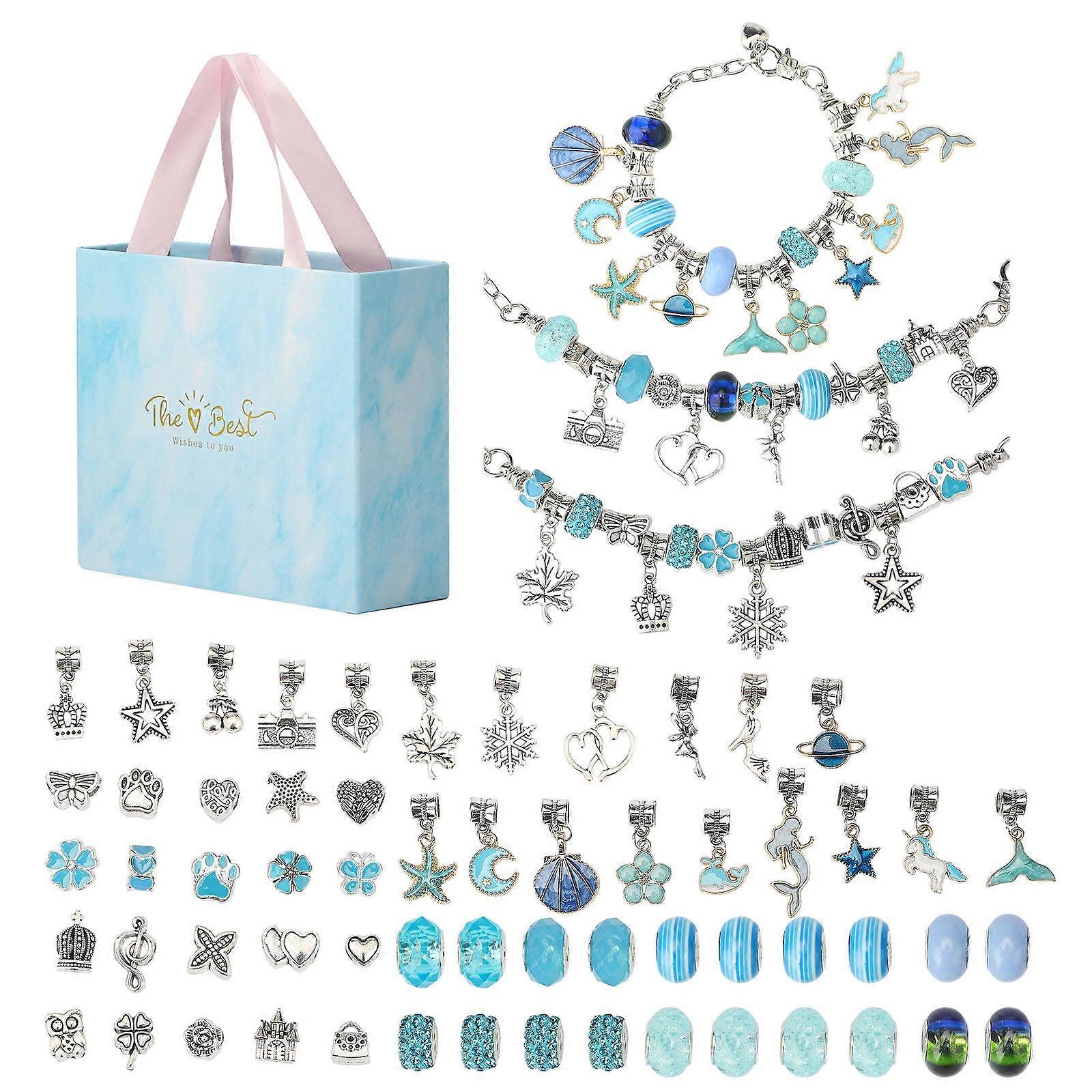 DIY Bracelet Kit Colorful Beads Alloy Charms Pink Gift for Girls
