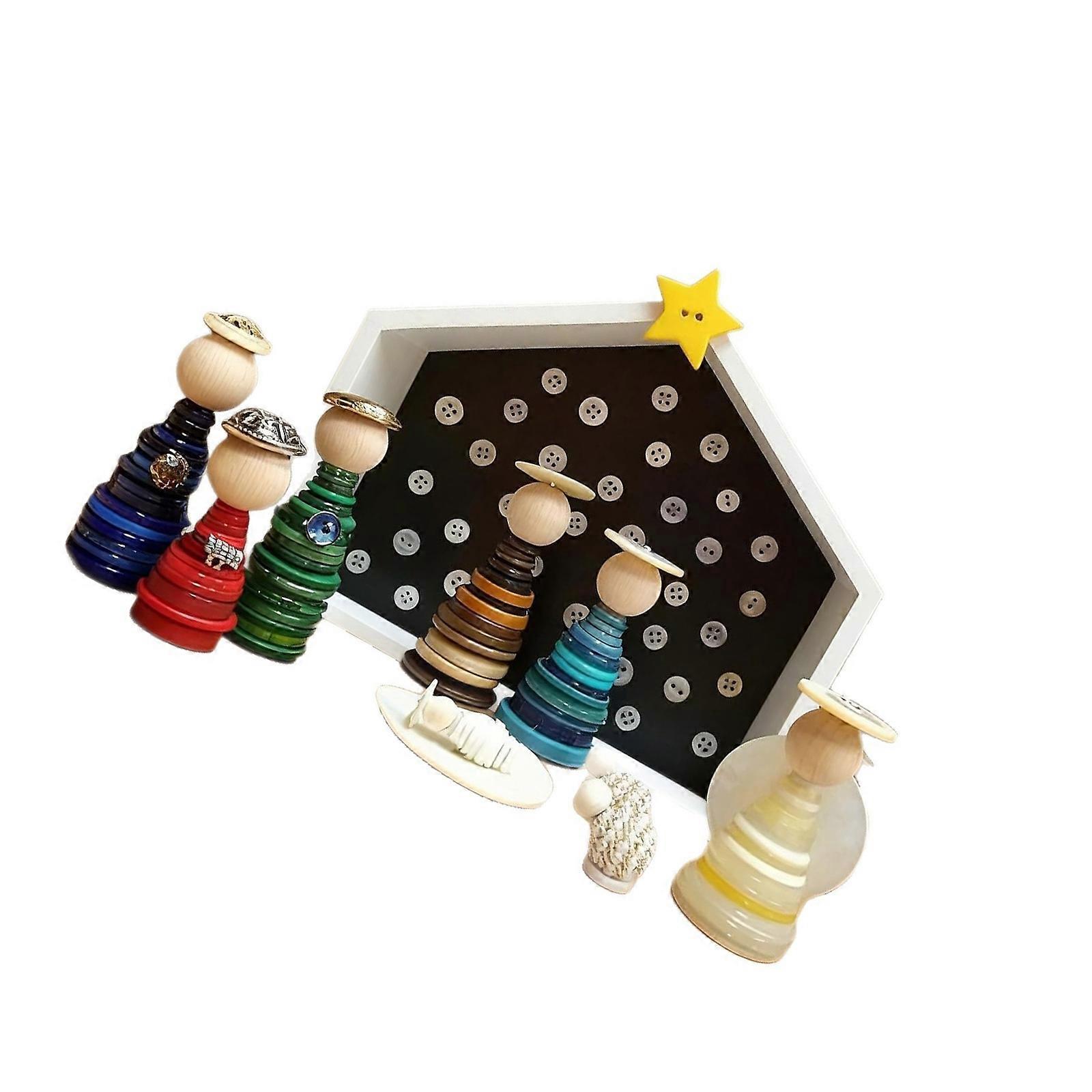 DIY Button Nativity Scene Kits Christmas Ornament Craft Button Kits for Christmas Party Supplies Christmas Jesuses Decors Multicolor