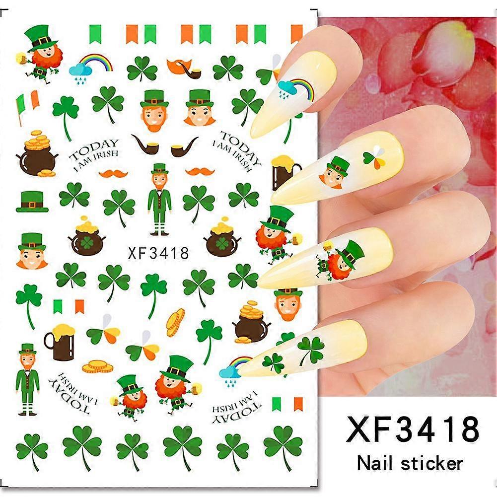 Green Four Leaf Clover 3D Nail Stickers For DIY Manicure Slider Spring Nail Deco