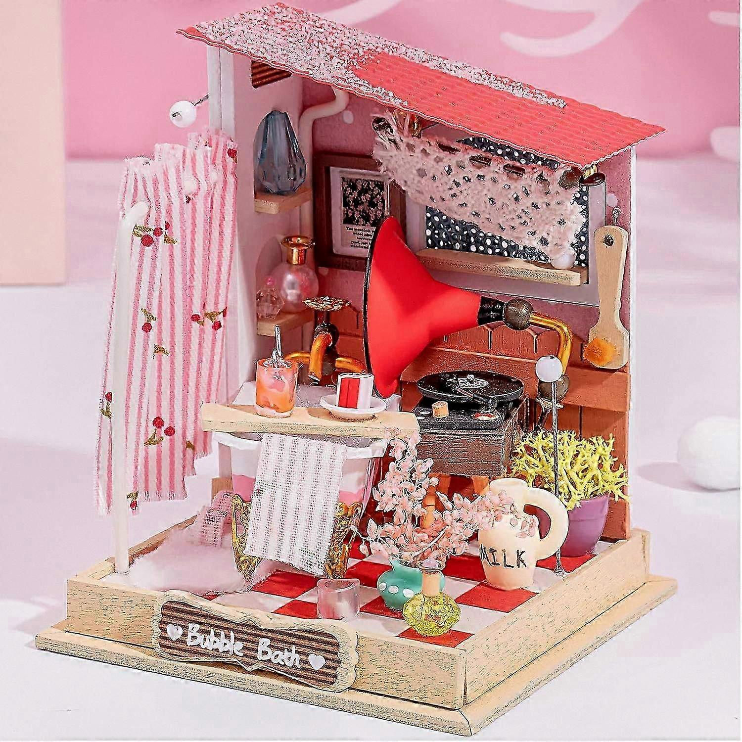DIY Miniature Dollhouse Furniture Kit - Bathroom Set with Bathtub
