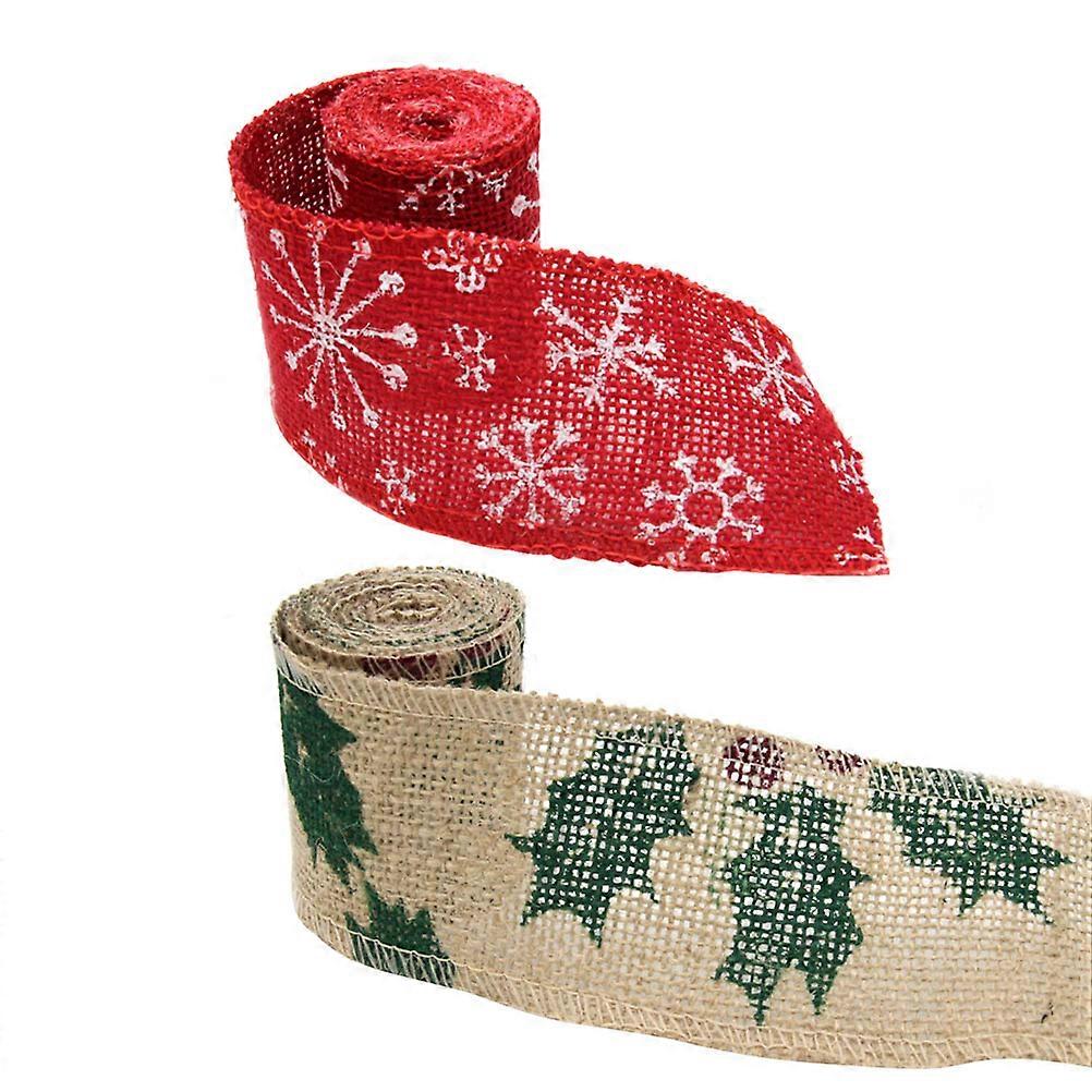 DIY Linen Roll Decorative Ribbons for Wreath Making Christmas Party Crafts Red Bottom White Snowflake 200x6cm 2 Rolls