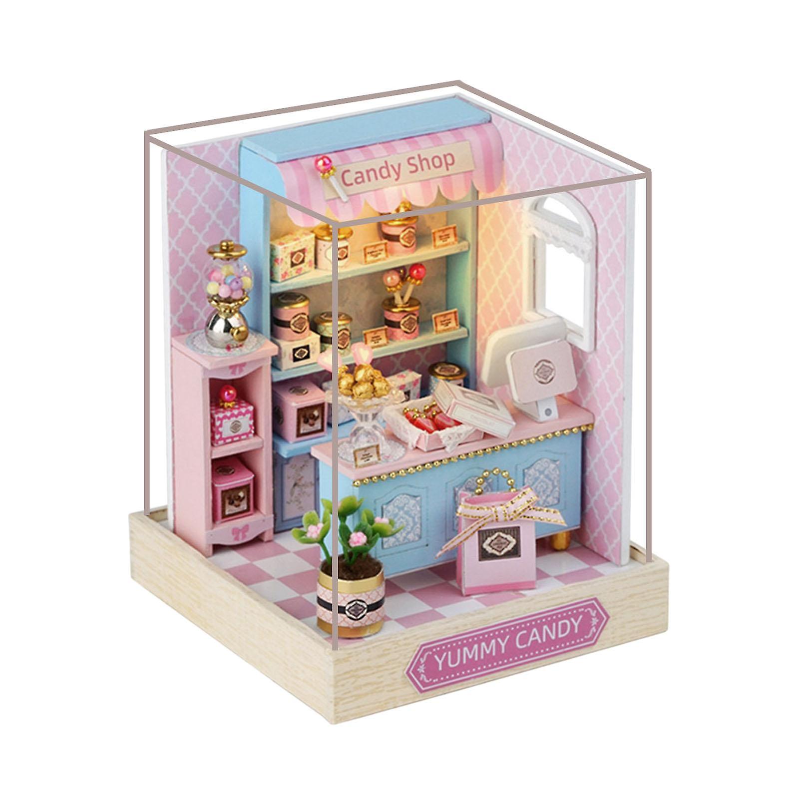 DIY Wooden Miniature Dollhouse Wood Doll House Model for Kids Adults Friends Delicious Candy
