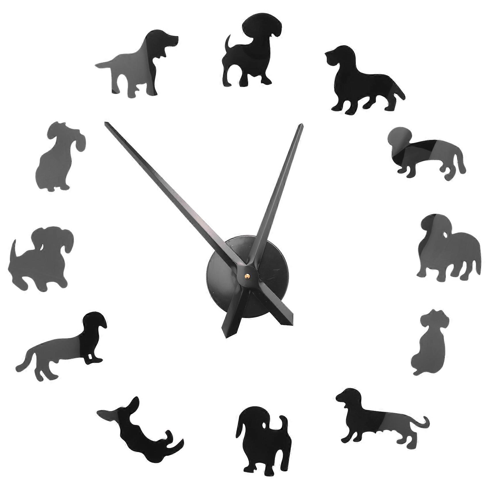 Diy Dog Pet Frameless Giant Wall Clock Clock Wall Watch Black