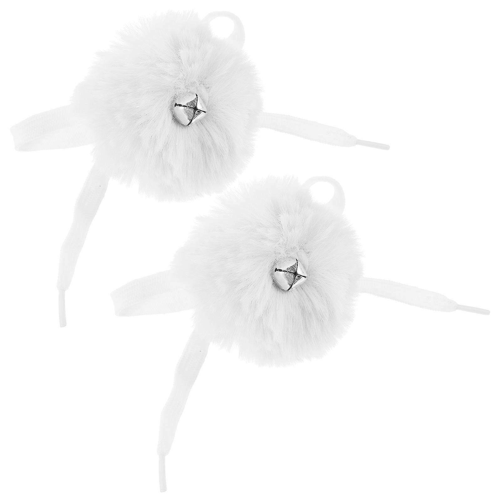 White Roller Skate Pom Poms with Bell for DIY Decorative Accessories 10Pcs