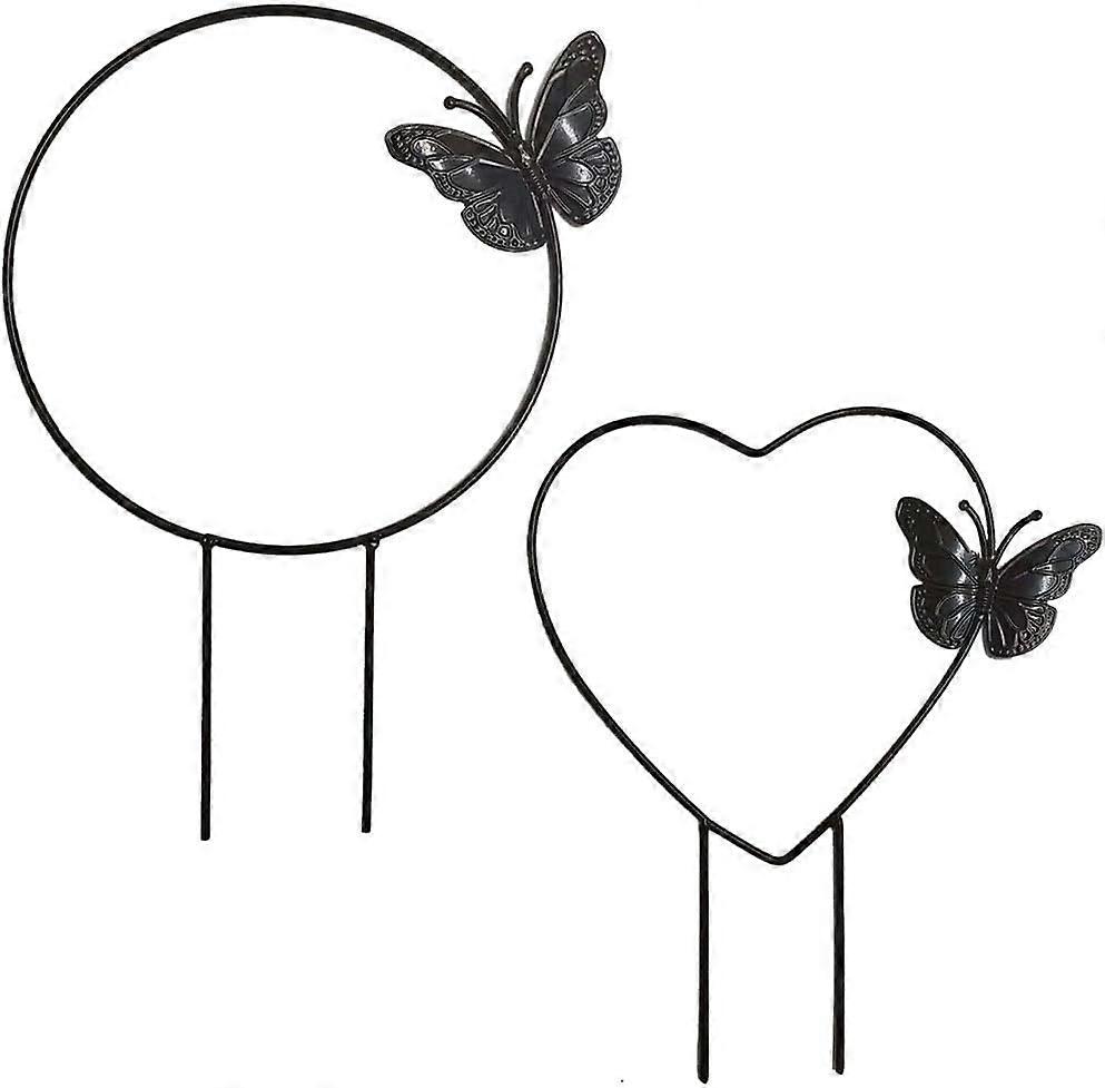 Size: Our package includes 2 round and heart-shaped metal garden trellis with butterfly design, round indoor climbing plant trellis measures 27*34cm, heart-shaped indoor climbing plant trellis measures 28*31cm, perfect Small plant trellis to support your potted indoor or outdoor plants.