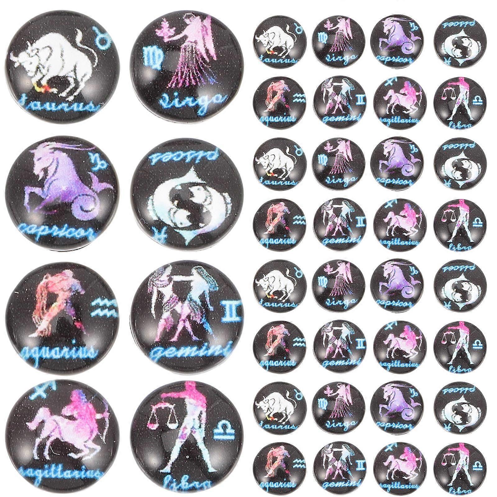 100pcs Patterned Glass Cabochons for DIY Jewelry Making – Zodiac Sign Dome Gems for Necklaces, Keychains & Crafts – Versatile Flat Cabochons for