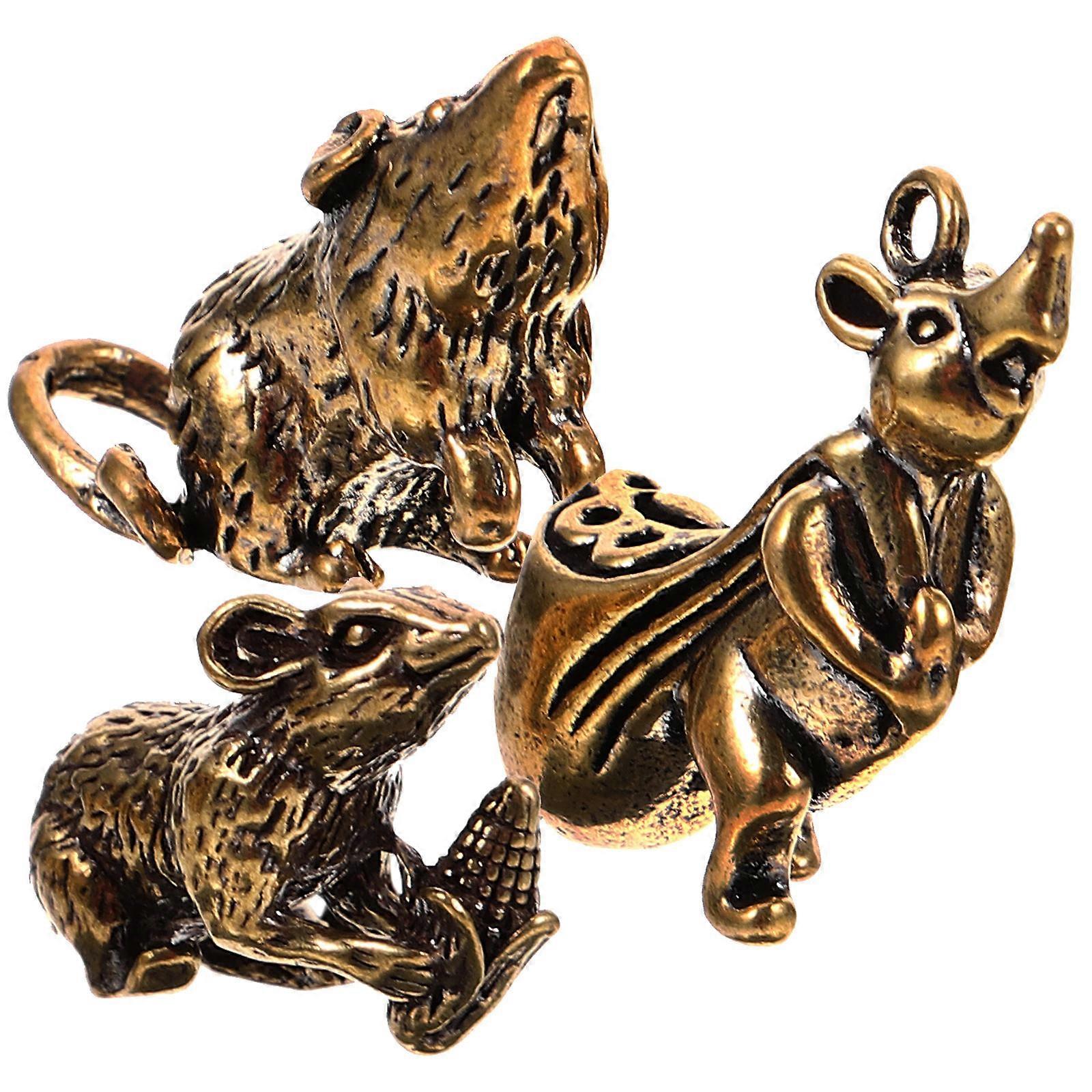 Copper Figurine Rat Shaped Statue for Diy Projects Assorted Color Material 3Pcs