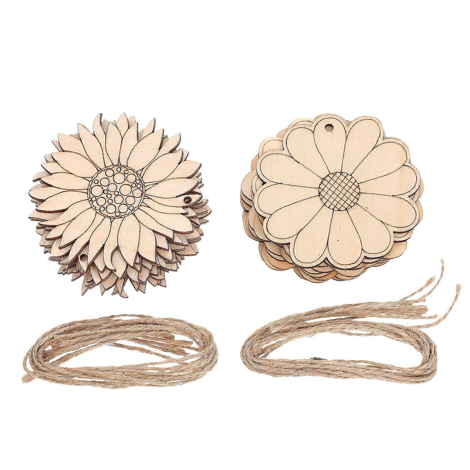 20PCS Unfinished Wooden Flower Chips for DIY Crafts, Sunflower Decor for Painting & Home Decoration Projects