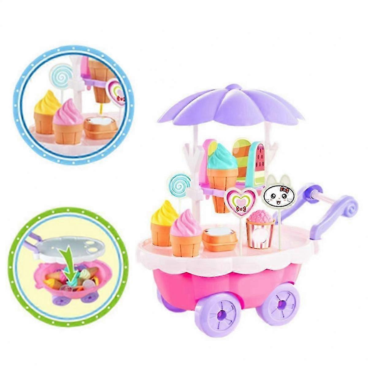 Material: plastic Size: about 14*24*25ccm Ability development: interest cultivation, emotion, parent-child communication, interactive toys Features: DIY puzzle decoration, simulation trolley shape Suitable for children aged 4-61The product has very smooth edges in result in no scratch injure for kids hand. 2Ability development: interest cultivation, emotion, parent-child communication, interactive toys. 3Easy to carry, small and simple. 4It has a variety of playing patterns. 5Discrete and fun, also effective for focus and deep thought. 28pcs/Set Kids Children Girls Ice Cream Cart Toy