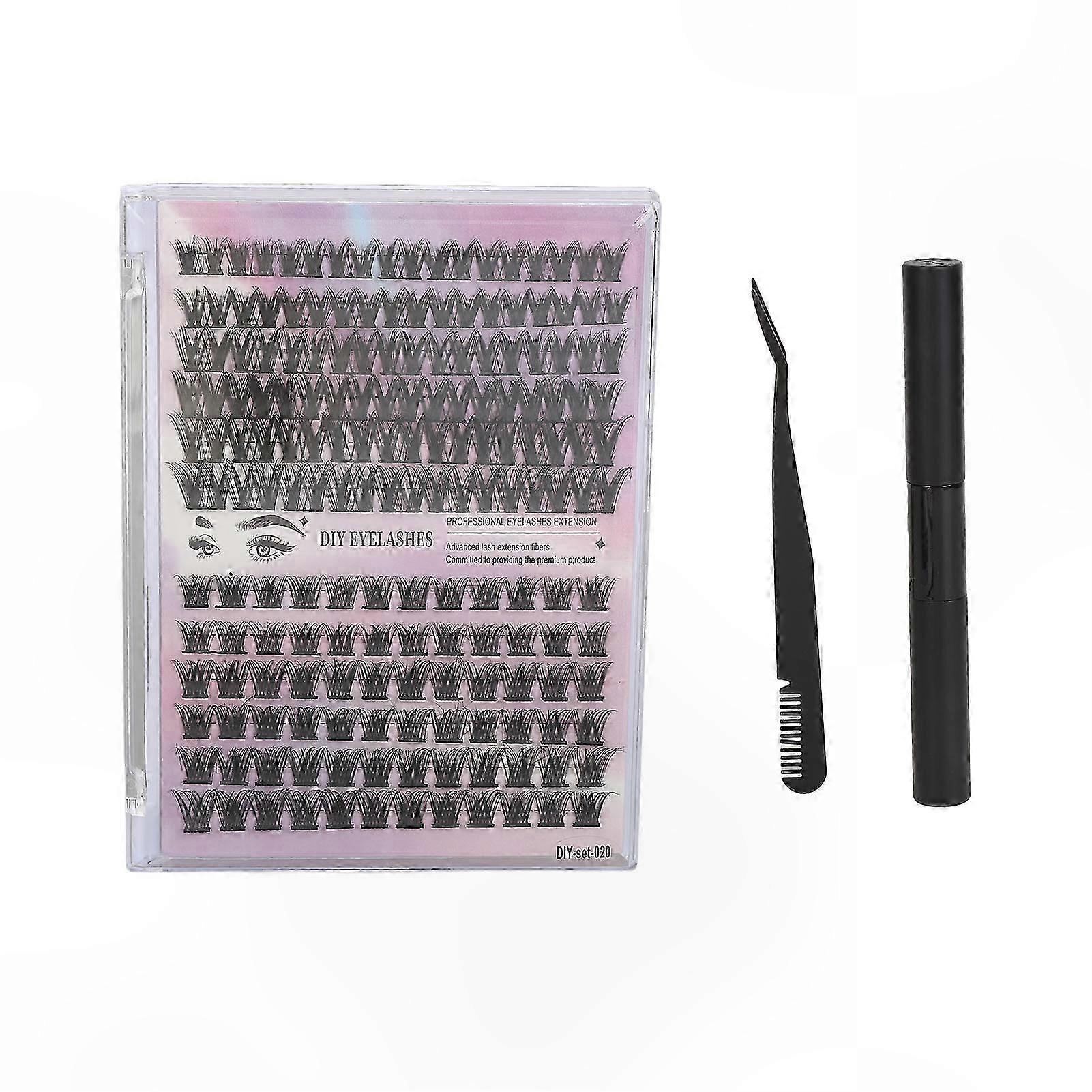 DIY Lash Extensions Kit with 126 Clusters, D Curl Fluffy Lashes, Dual End Tweezers, and 3ml Bond Glue