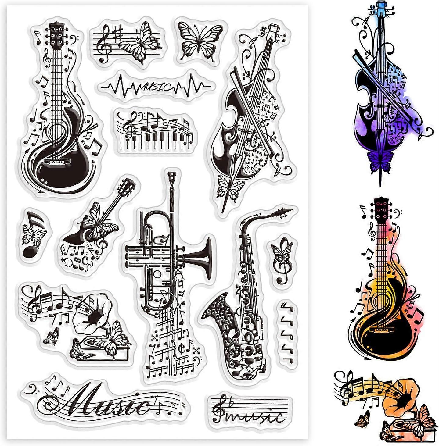 Music Instruments Clear Stamps Music Note Silicone Clear Stamp Seals Violin Guitar Transparent Stamps for DIY Scrapbooking Cards Making Photo Album Jo
