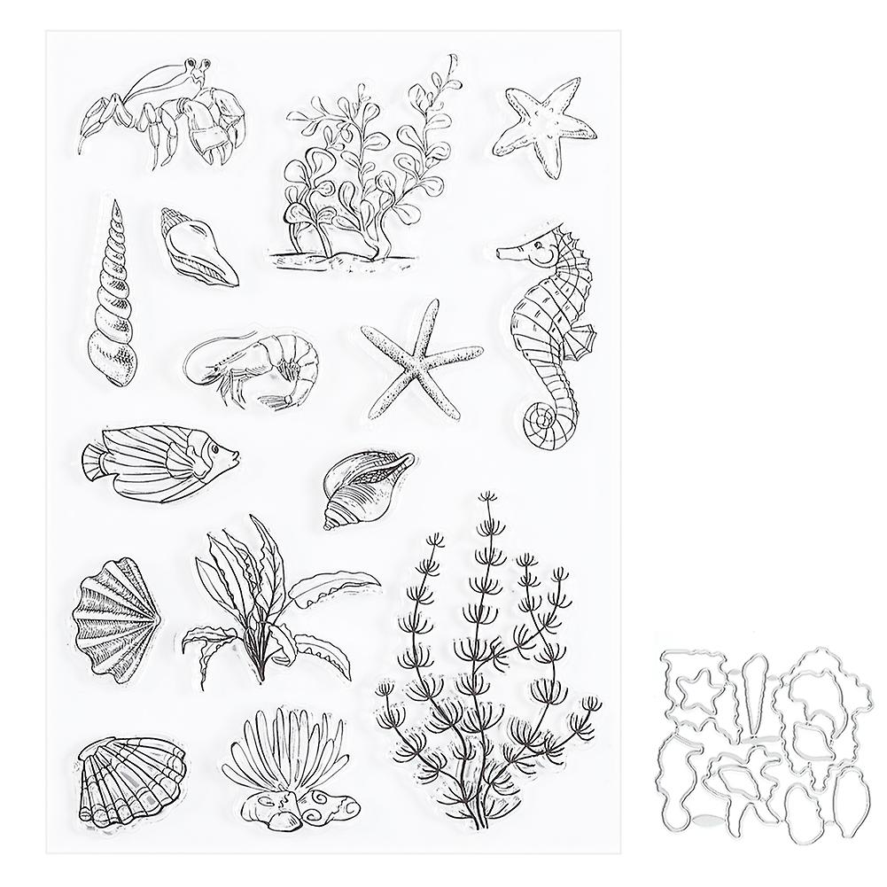 Transparent Stamp Cutting Die Clear Rubber DIY Journal Sea Horse Conch Seabed Pattern Craft