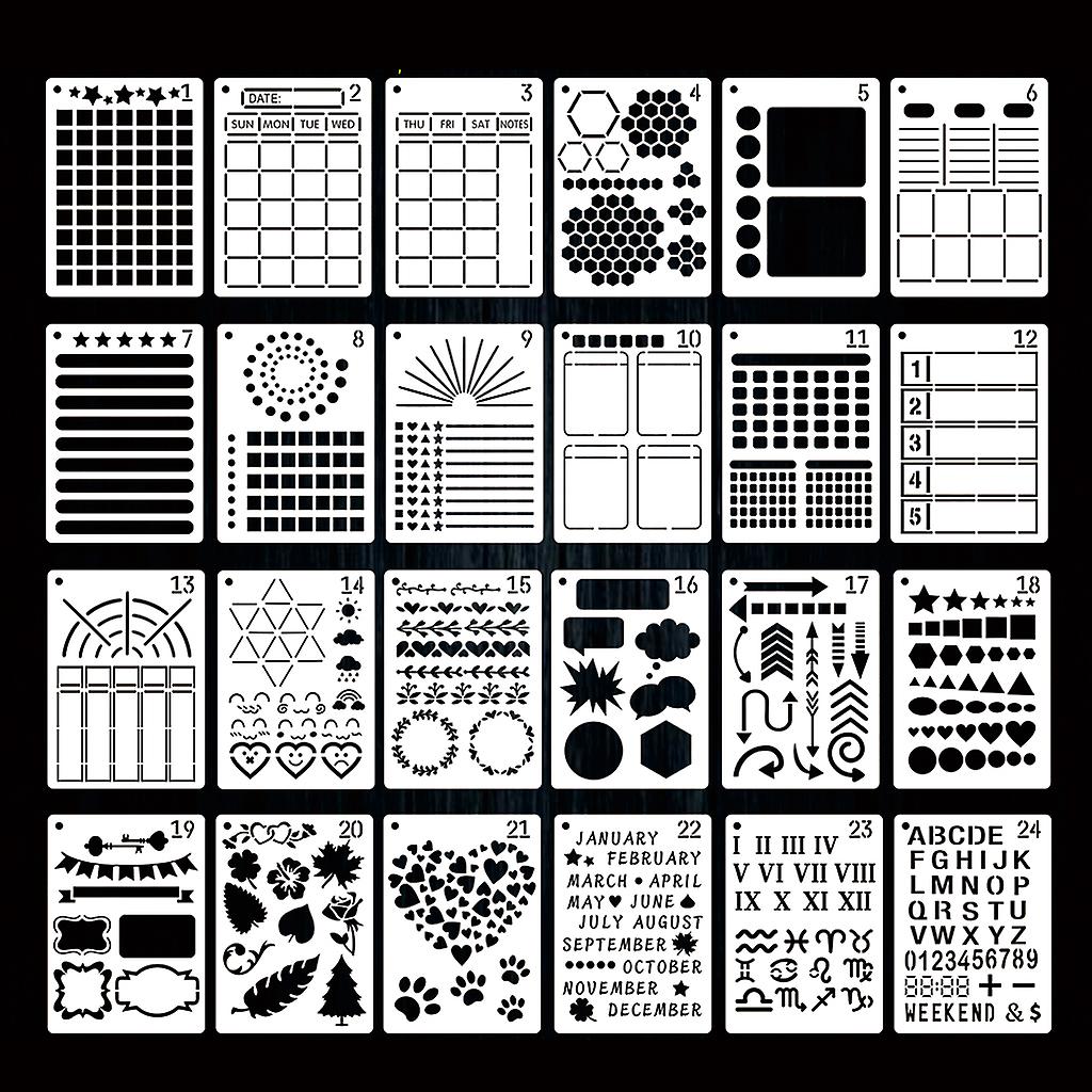 24Pcs Journal Stencils for Adult DIY Diary Planner Notebook Scrapbook Calender