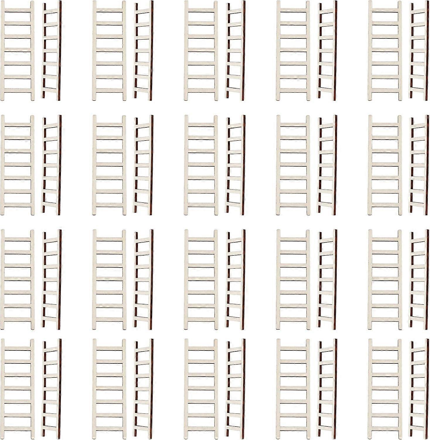 DIY 40PCS Mini Wooden Step Ladders Fairy Furniture Garden Ornament Ladder DIY Craft House Staircase Fairy Garden Accessories for Scene Props Dollhouse