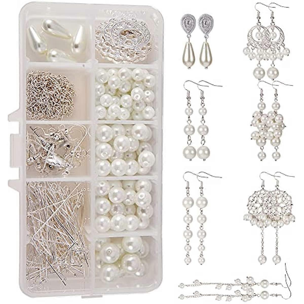 DIY 8 Pairs White Pearl Drop Dangle Long Earring Making Starter Kit Pearls Ball Jewelry Supplies Craft Set for Beginners Women Instruction
